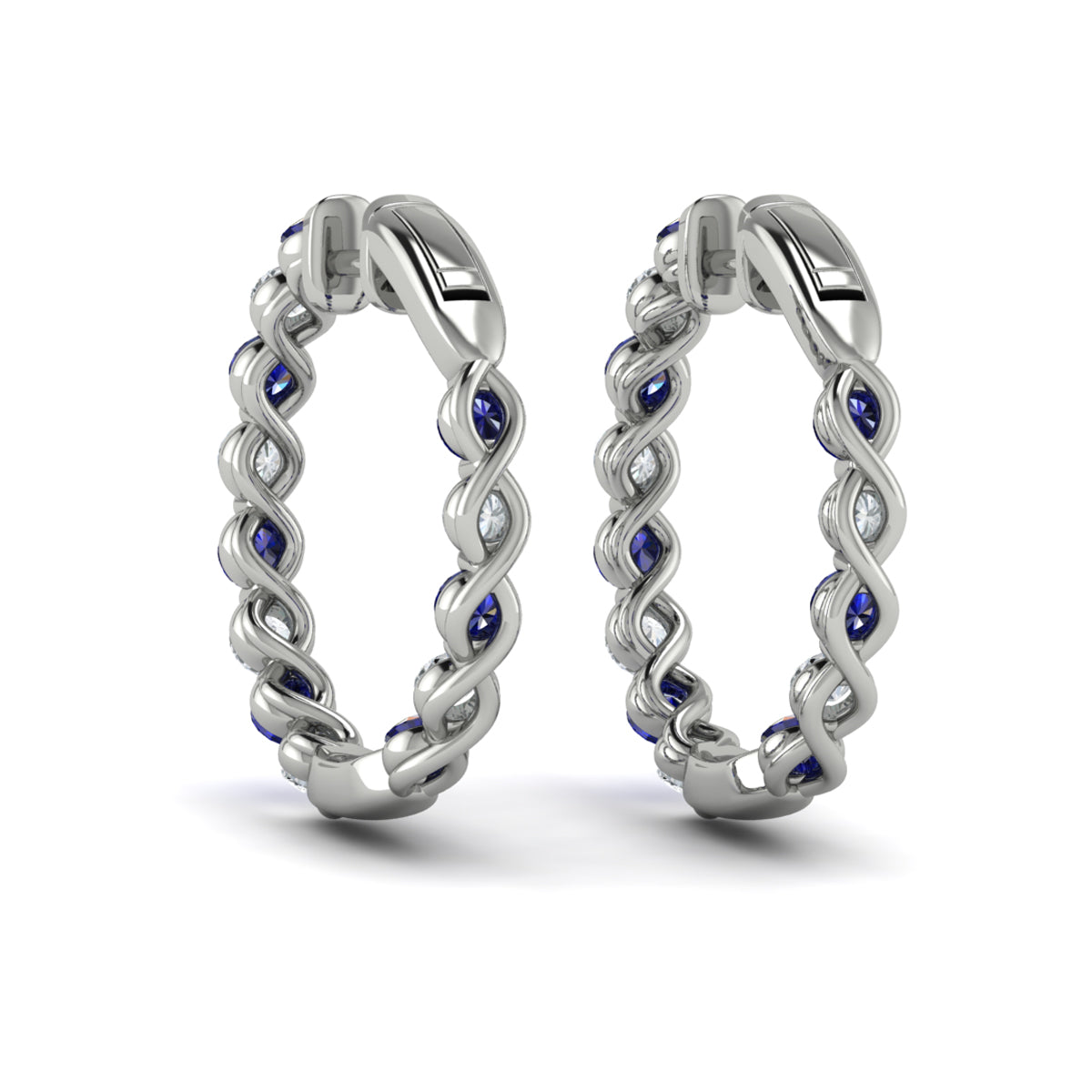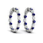 Inside Out Diamond and Blue Sapphire Hoop Earrings