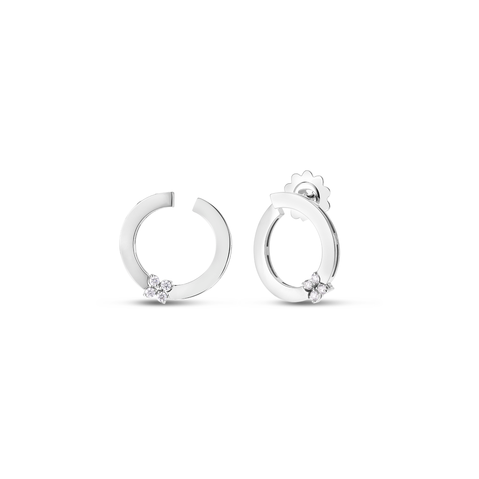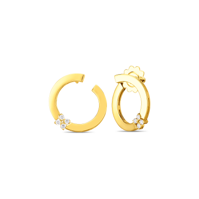 Crafted in exquisite 18K gold, these Love in Verona earrings feature a sweeping circular design accented with a sparkling diamond floral motif. Their elegant, timeless appeal complements both everyday and special occasions, offering a subtle yet sophisticated sparkle that enhances your natural beauty. Perfect for those seeking refined luxury with a romantic touch.