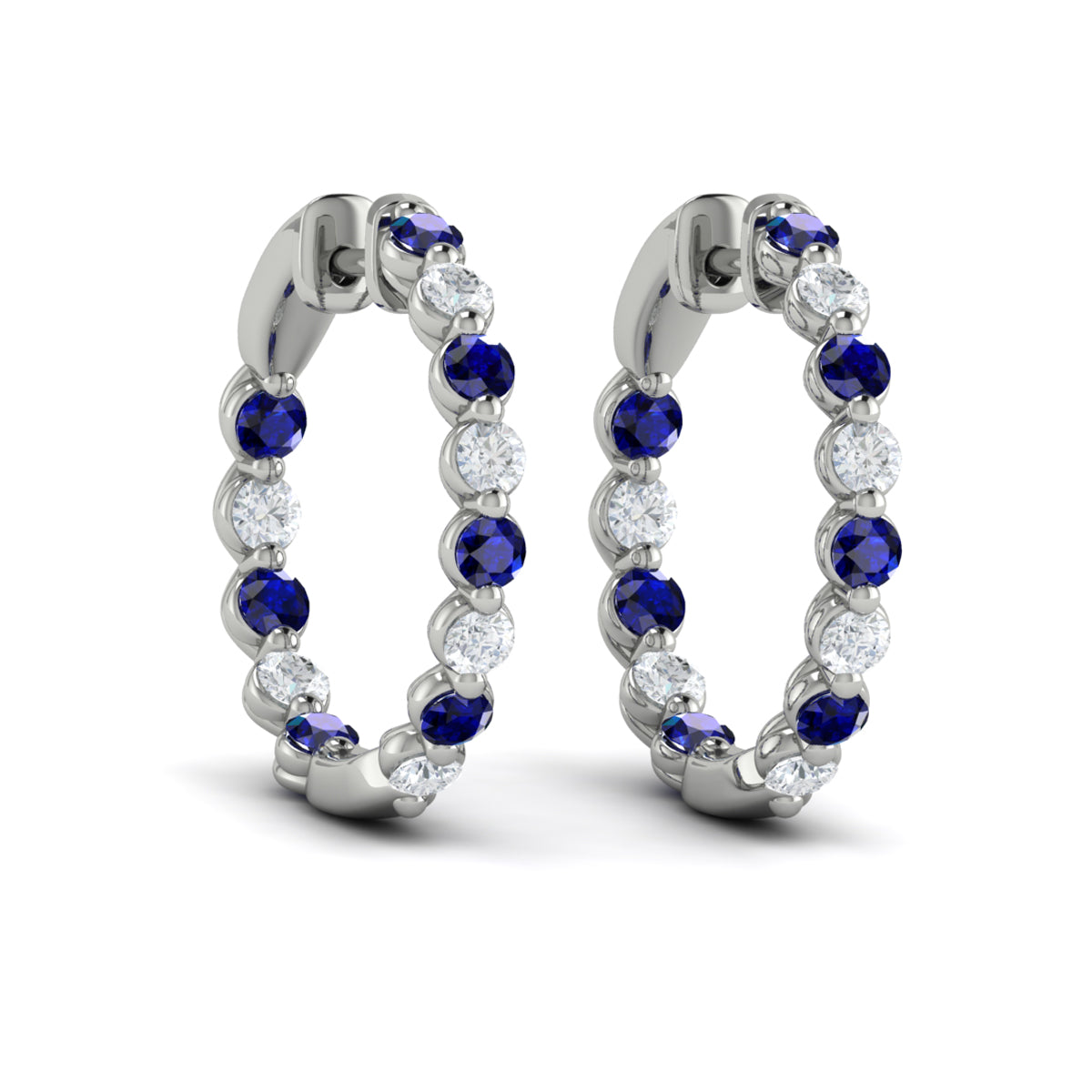 Inside Out Diamond and Blue Sapphire Hoop Earrings