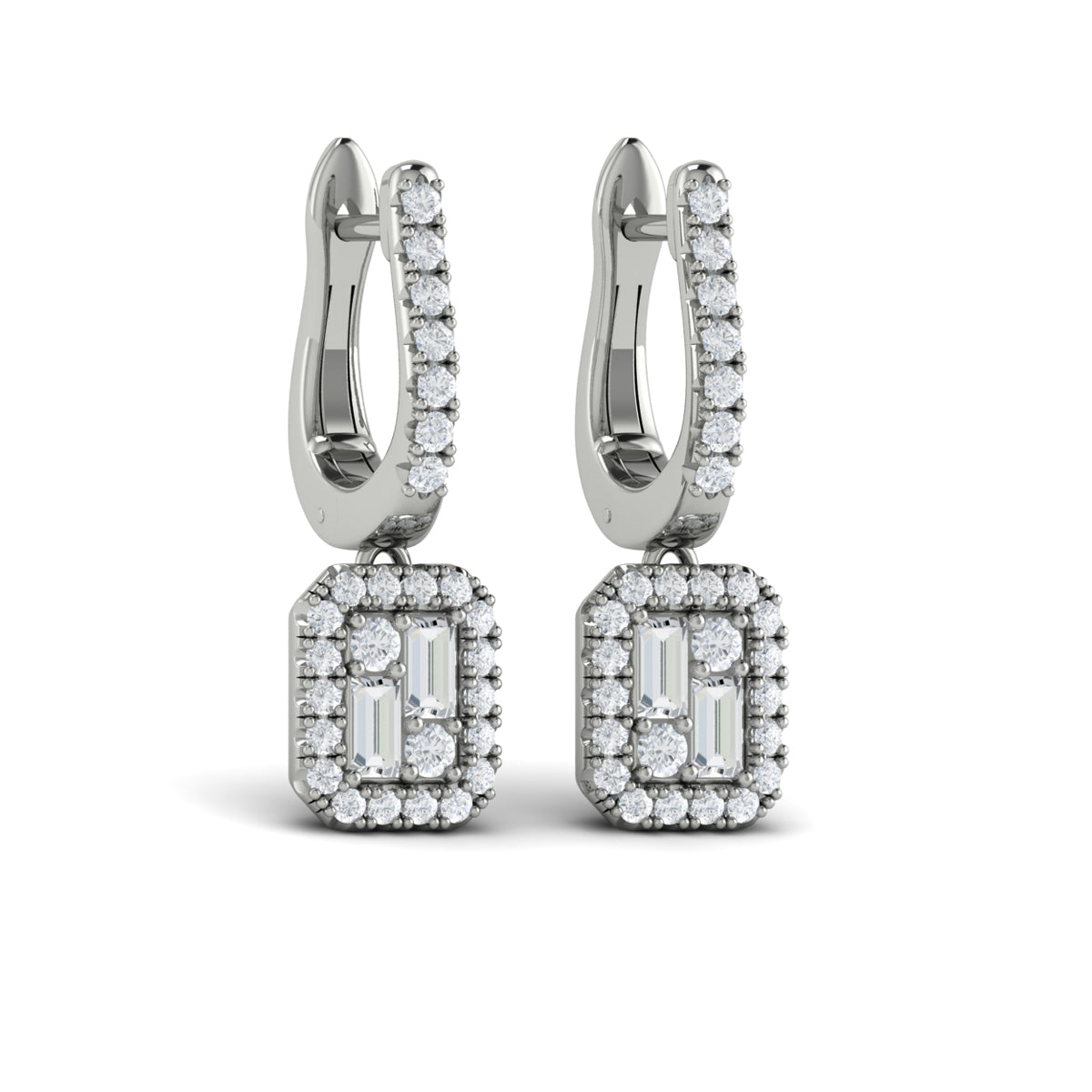 Diamond Baguette Halo Drop Huggie Earrings