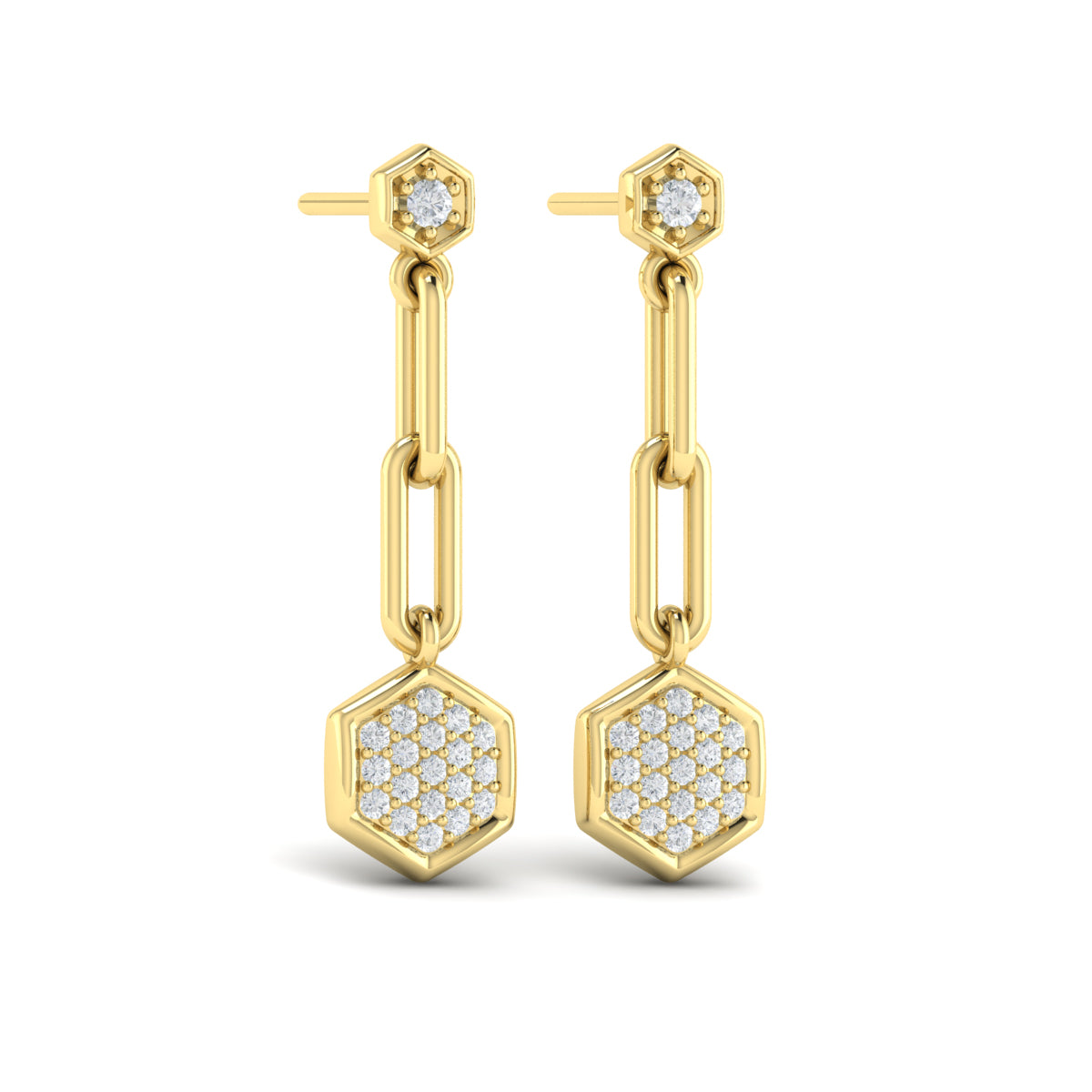 Diamond Honeycomb Link Long Drop Statement Earrings
