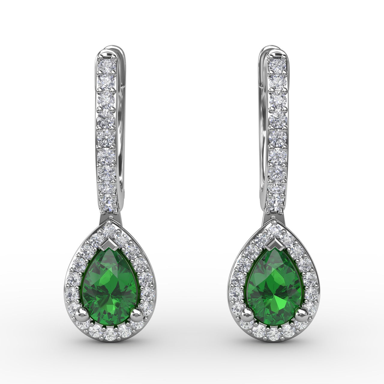 Forward-facing Diamond and Emerald Open Hoop Earrings
