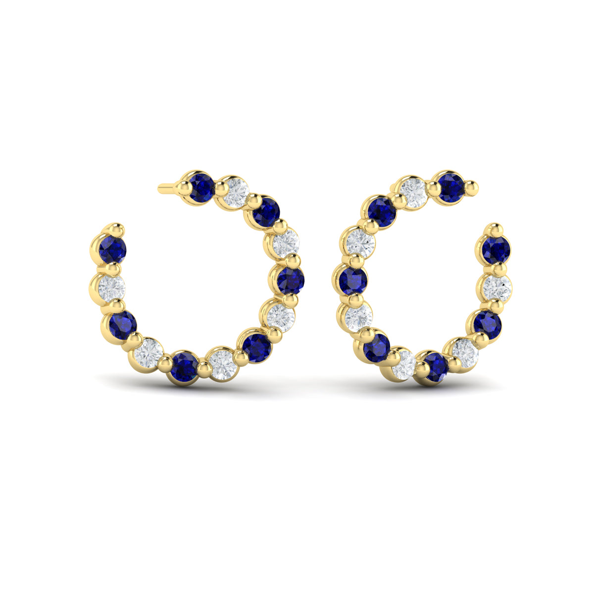 Forward-facing Diamond and Blue Sapphire Open Hoop Earrings