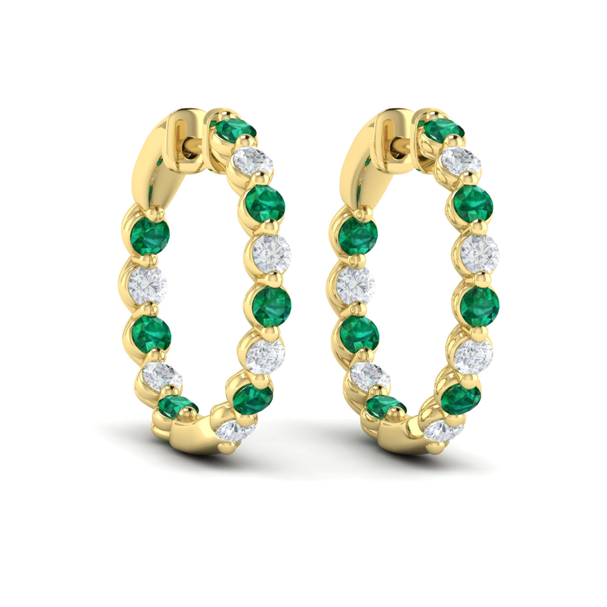 Inside Out Diamond and Emerald Hoop Earrings