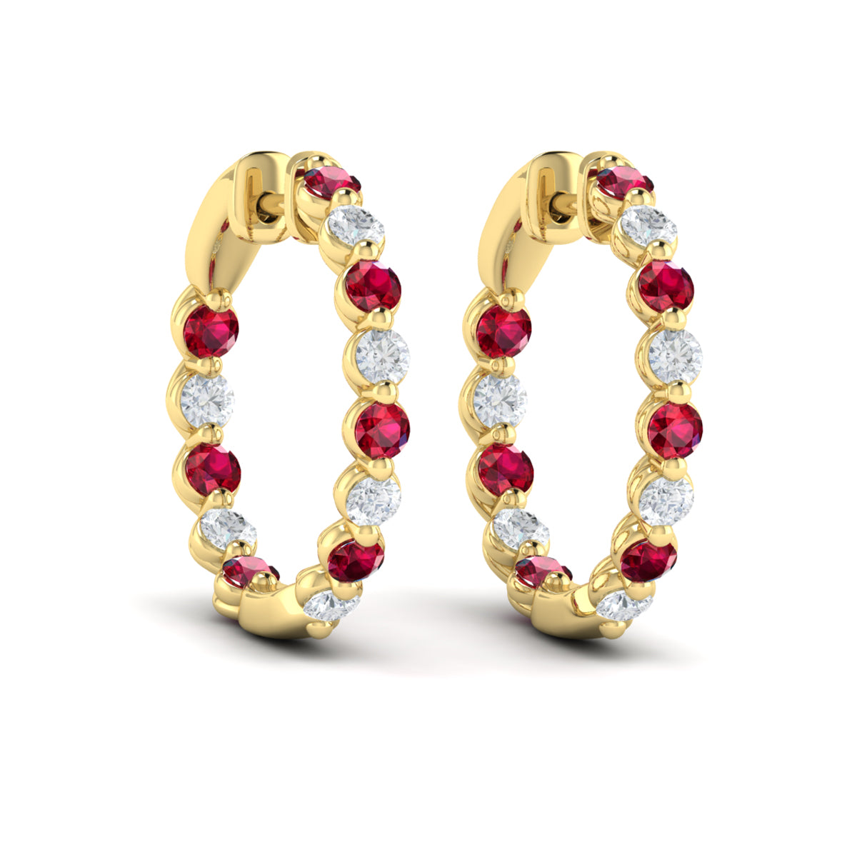 Inside Out Diamond and Ruby Hoop Earrings