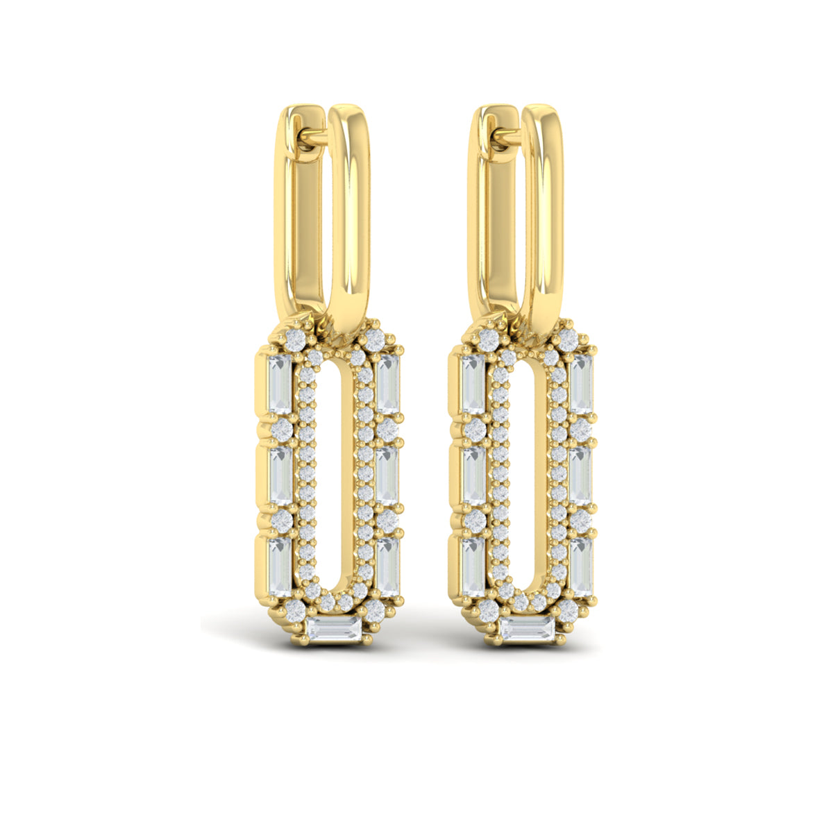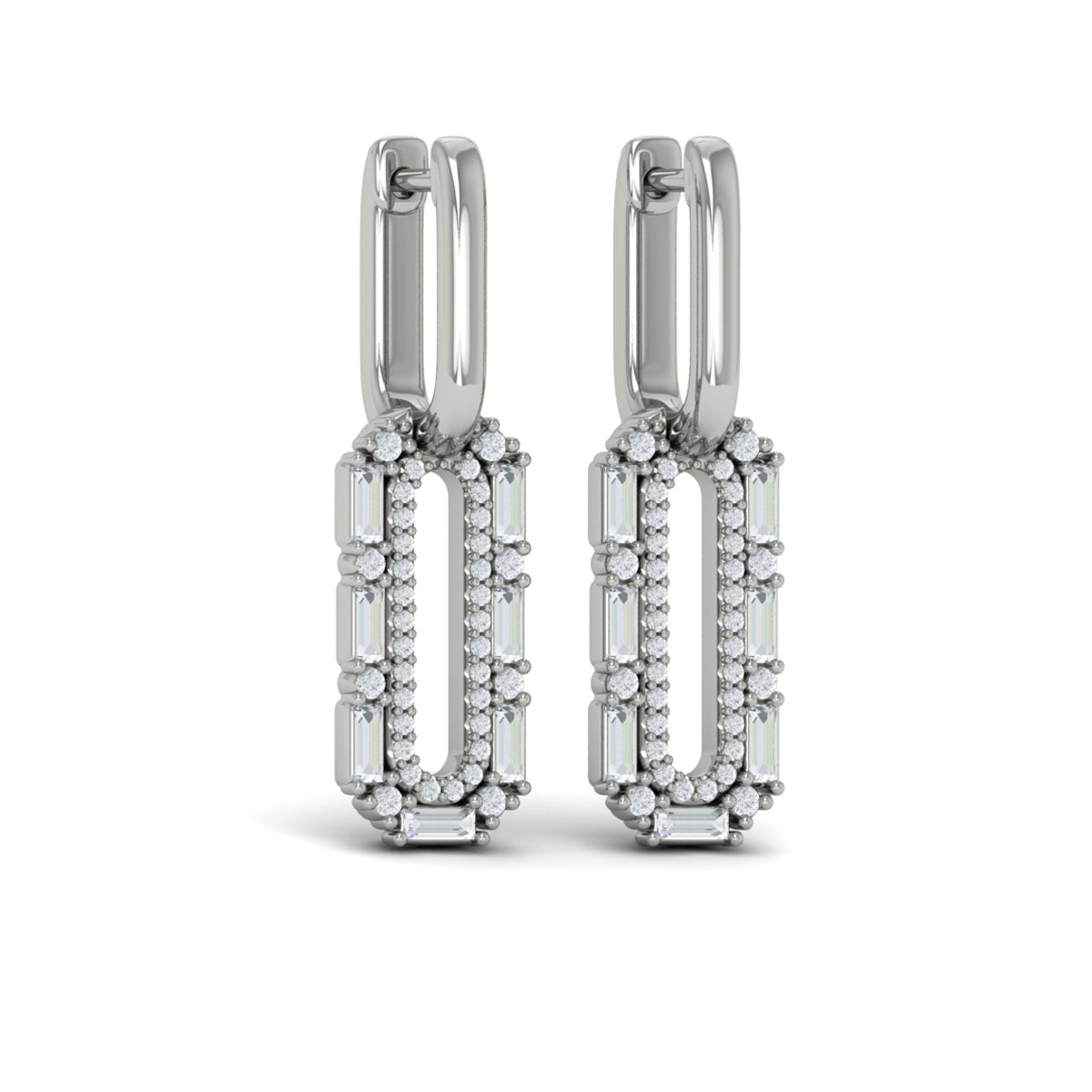 Diamond Baguette Double Row Link Drop Huggie Earrings