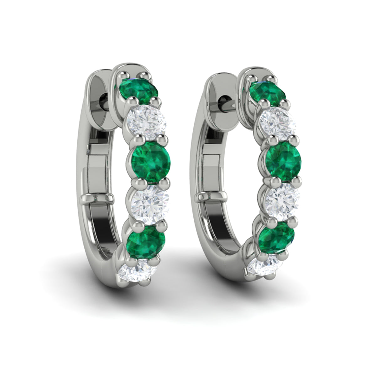 Forward-facing Diamond and Emerald Open Hoop Earrings