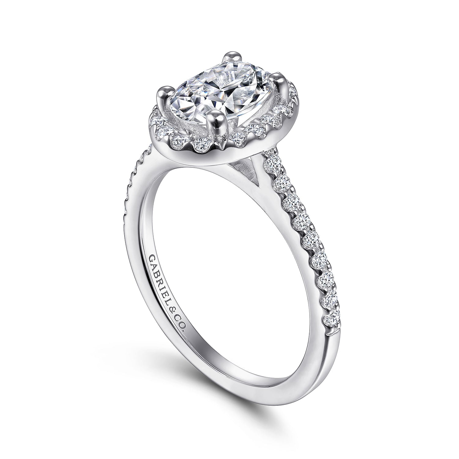 14K White Gold Oval Halo Diamond Engagement Ring