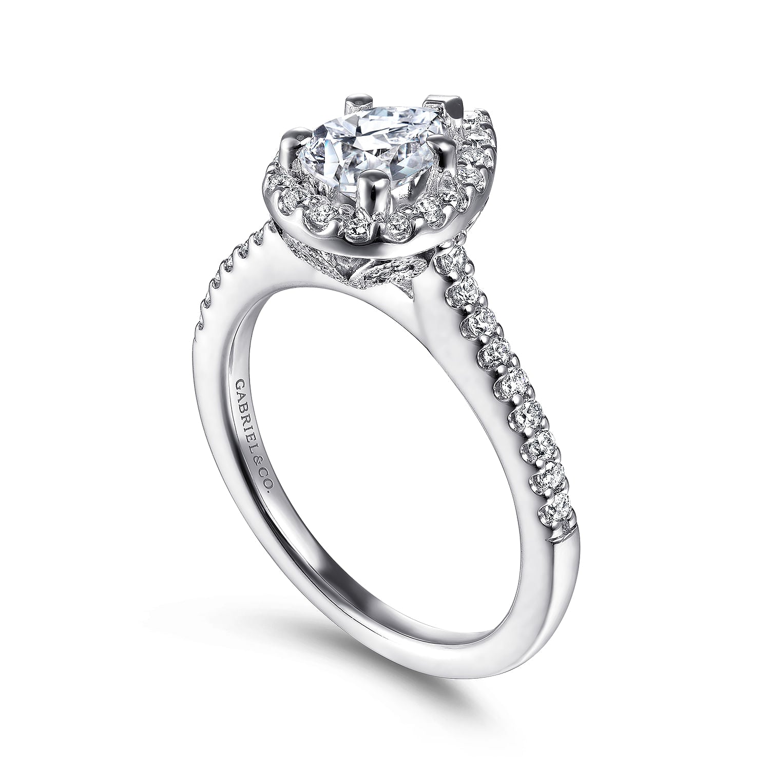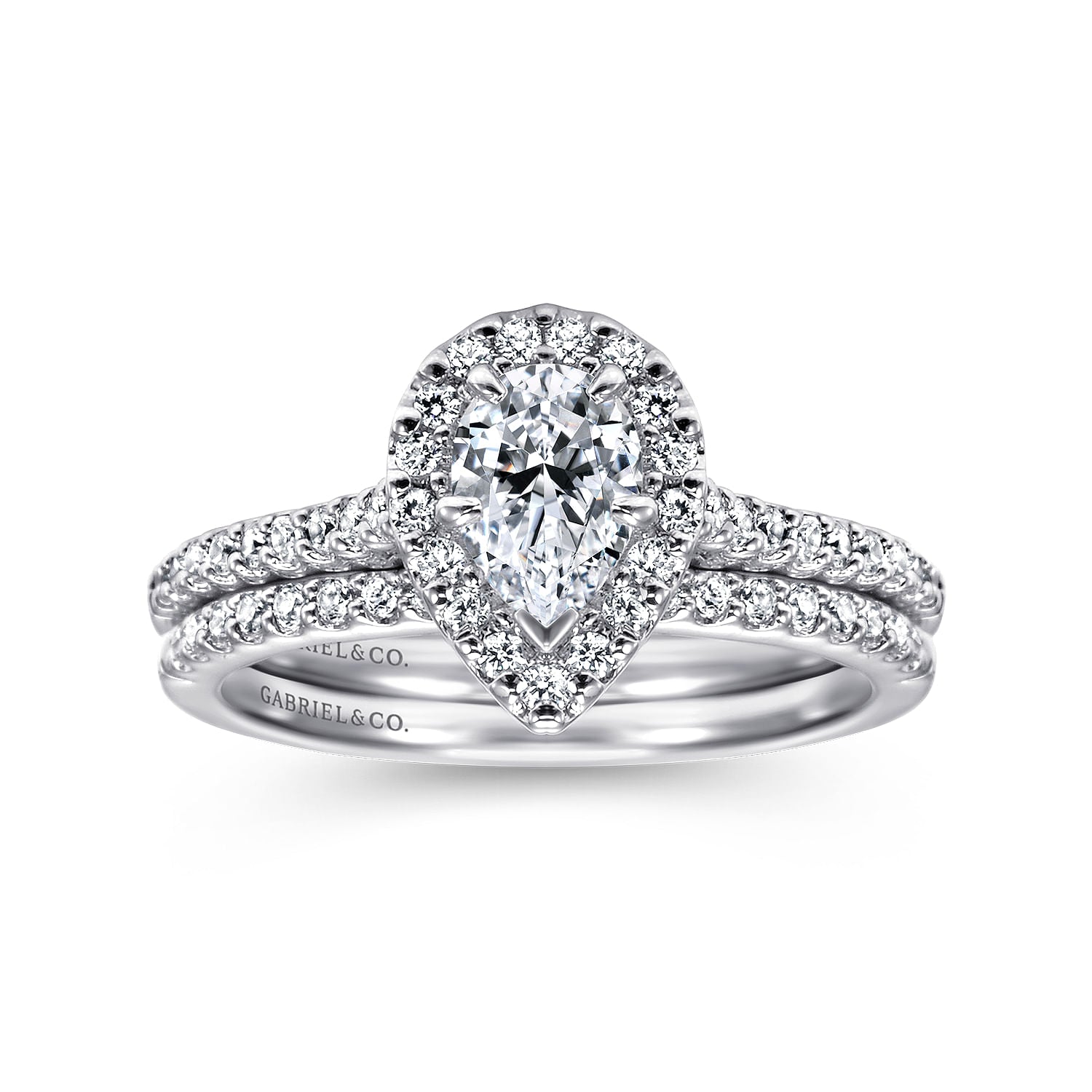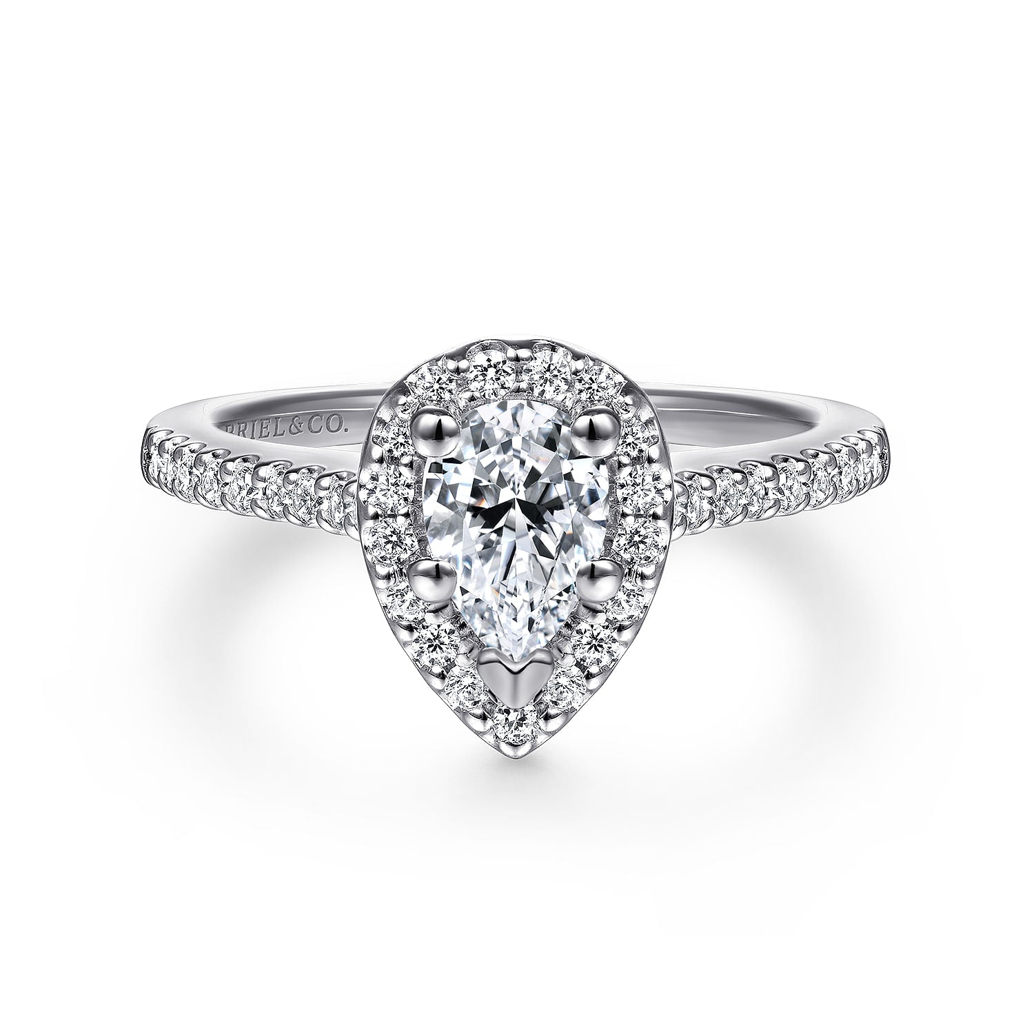 You're reviewing: 14K White Gold Pear Shape Halo Diamond Engagement Ring