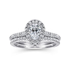 14K White Gold Pear Shape Halo Diamond Engagement Ring