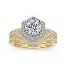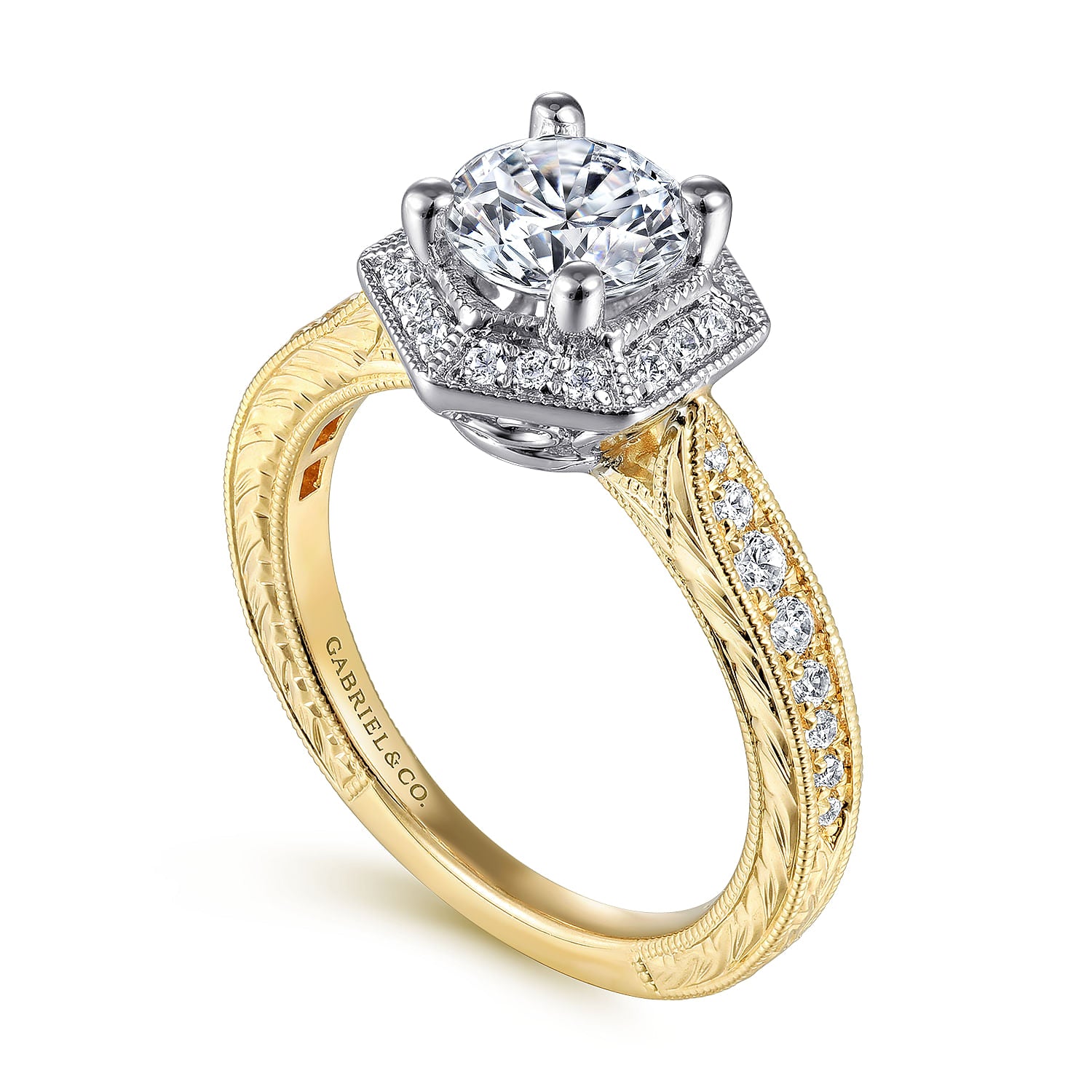 You're reviewing: Art Deco 14K White-Yellow Gold Hexagonal Halo Round Diamond Engagement Ring