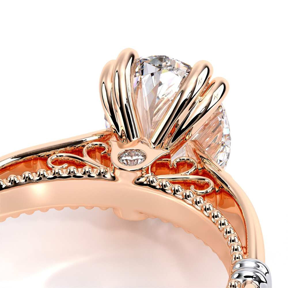 PARISIAN-120OV is a solitaire setting that is decorated with the handcrafted Parisian lace and Verragio Signature beading that adds a modern twist to a classic design while enhancing the oval center diamond.