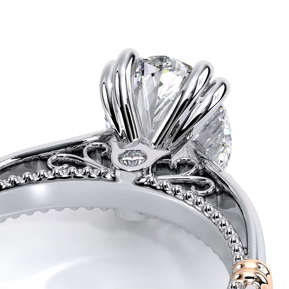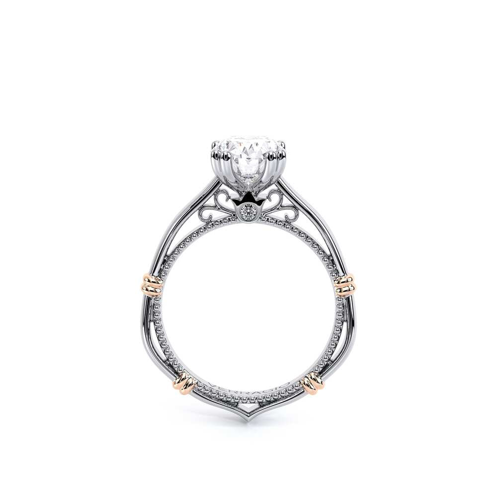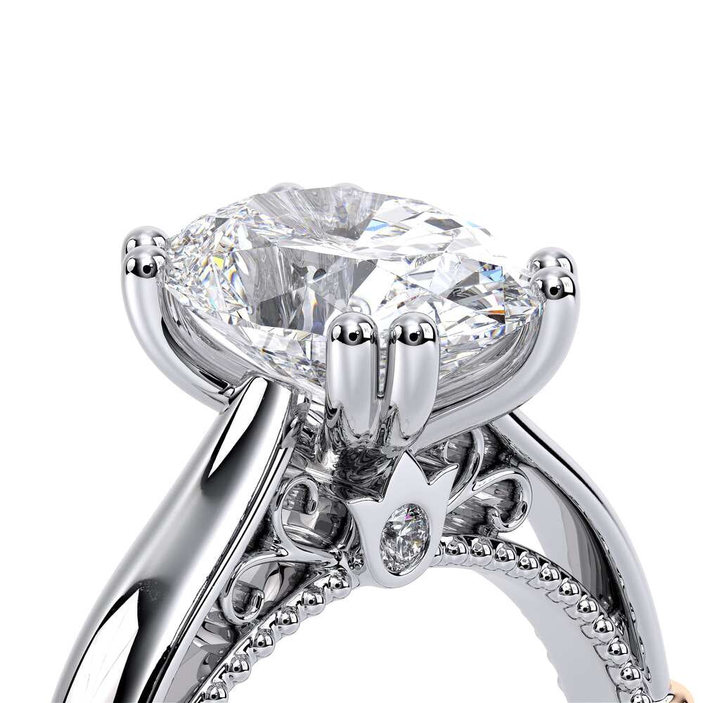 PARISIAN-120OV is a solitaire setting that is decorated with the handcrafted Parisian lace and Verragio Signature beading that adds a modern twist to a classic design while enhancing the oval center diamond.