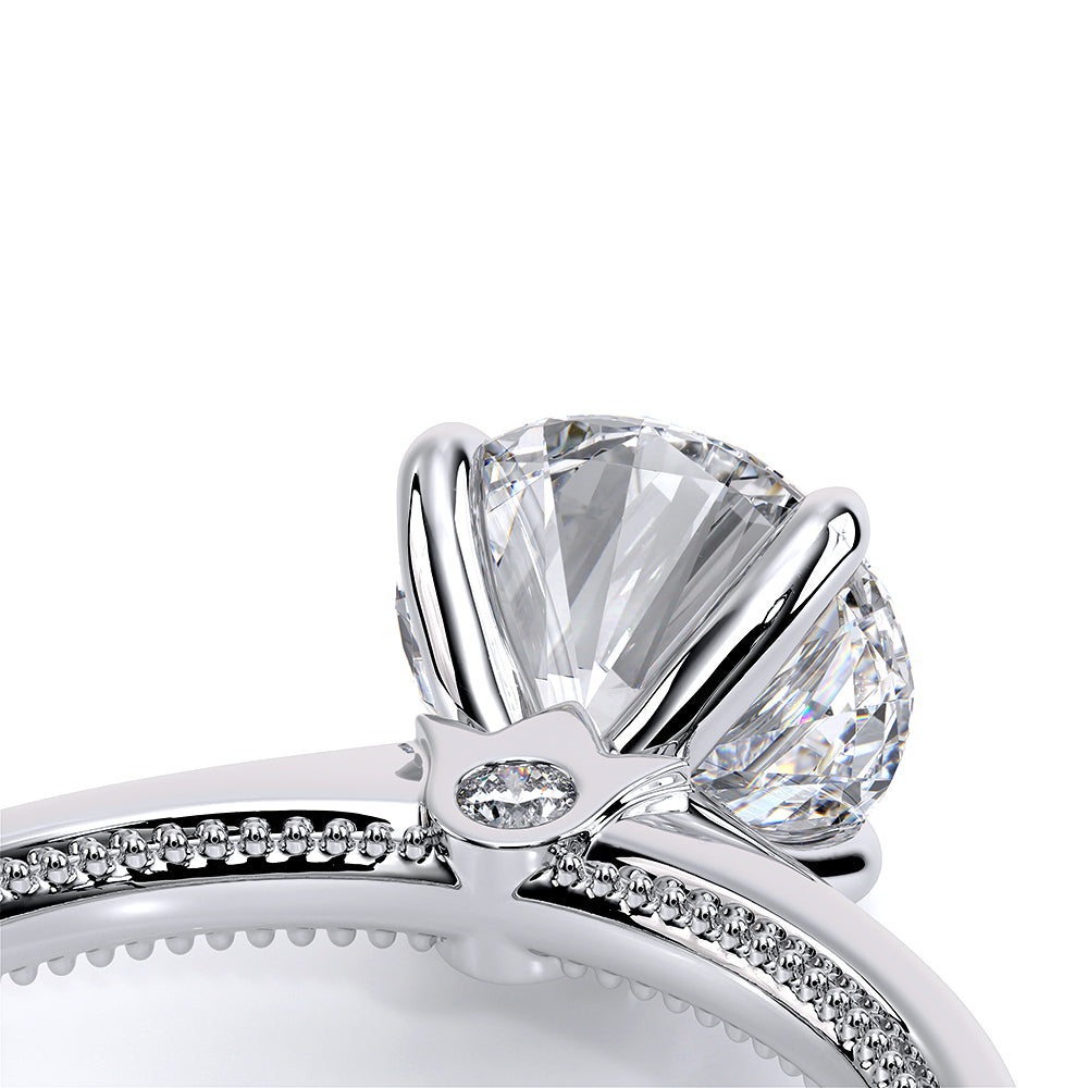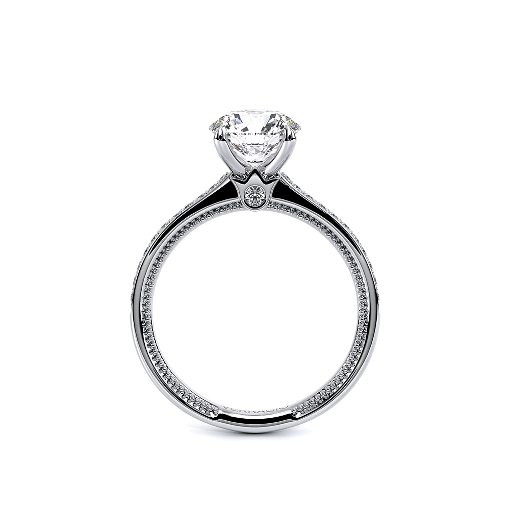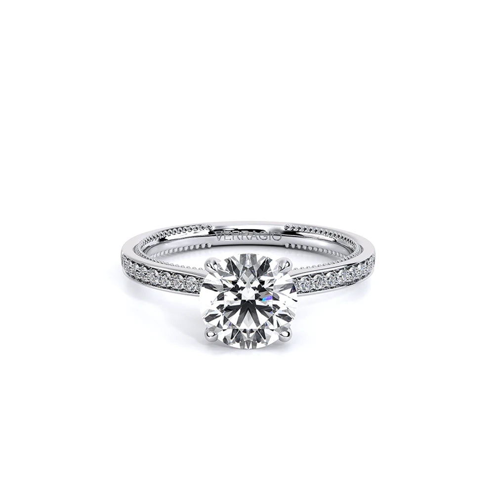 Renaissance-SLD301-R is a timeless engagement ring, created for your perfect Round shaped center stone. The diamond band is set to maximize the sparkle and brilliance of your center stone. This setting features an elegant and refined profile with Verragio's signature beading and crest.