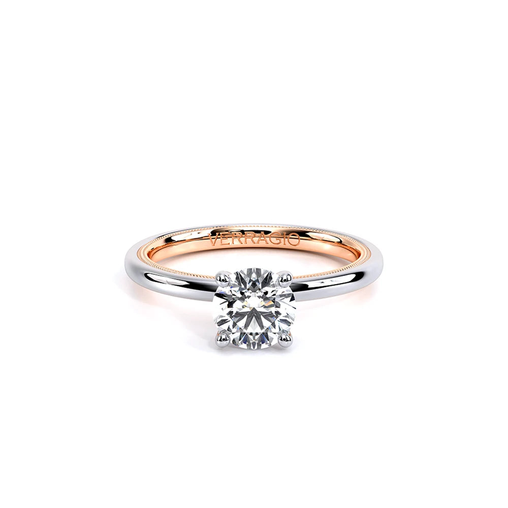 TR-120R4-S features an elegant solid band that is forged under extreme pressure and pushes the limits of refined durability. This ring features our hand sculpted Signature Verragio beading and Verragio crest to perfectly highlight your choice of center stone.