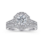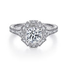 You're reviewing: Unique 14K White Gold Art Deco Halo Diamond Engagement Ring