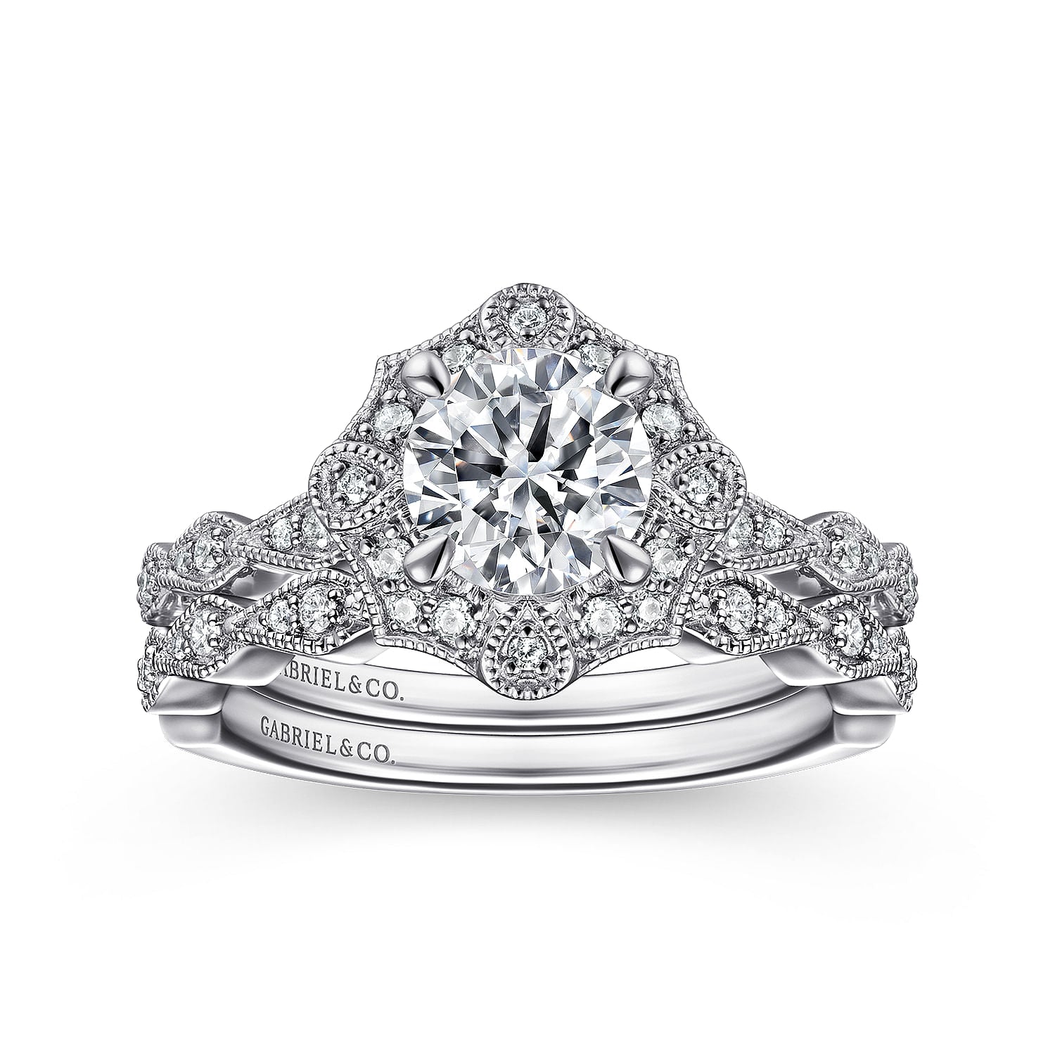 You're reviewing: Unique 14K White Gold Art Deco Halo Diamond Engagement Ring
