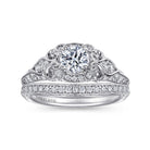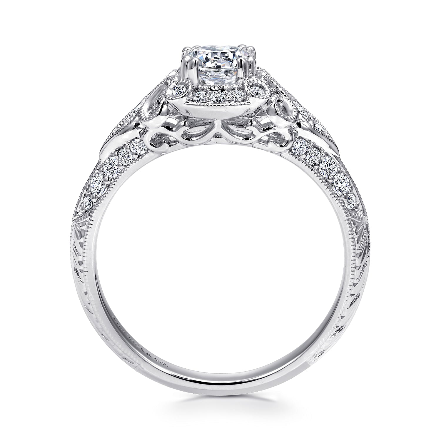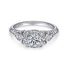 Unique 14K White Gold Vintage Inspired Diamond Halo Engagement Ring