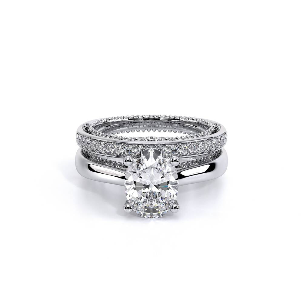 VENETIAN-5047OV engagement ring from the Venetian Collection features a clean and classic look on the outside enhancing the Oval diamond center, the inside band showcases our beautiful intricate Venetian lace and signature beading, making this a timeless piece in our collection.