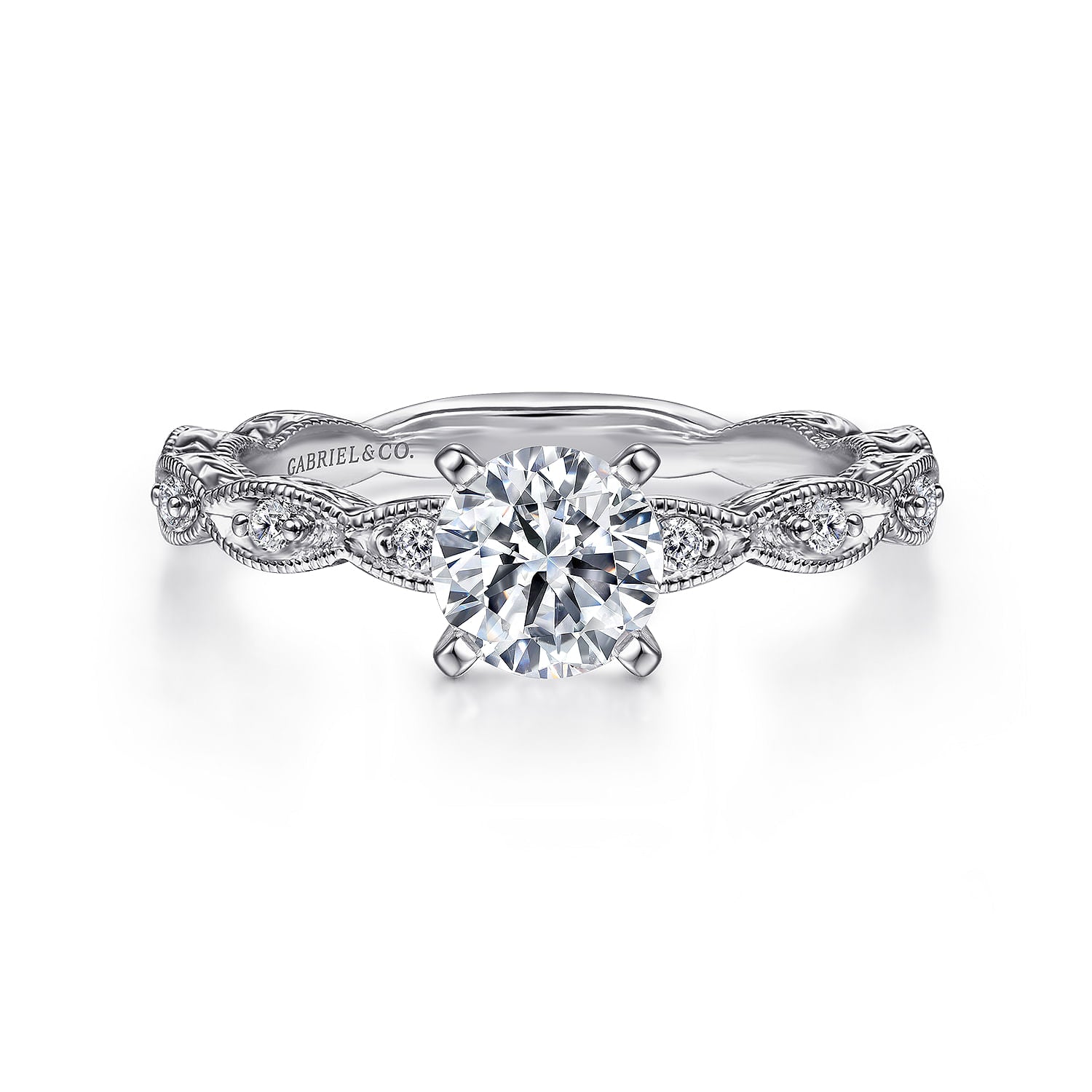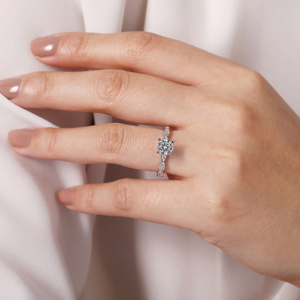 Vintage Inspired 14K White Gold Round Diamond Engagement Ring