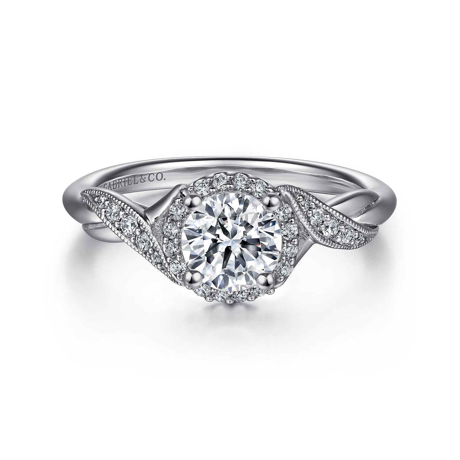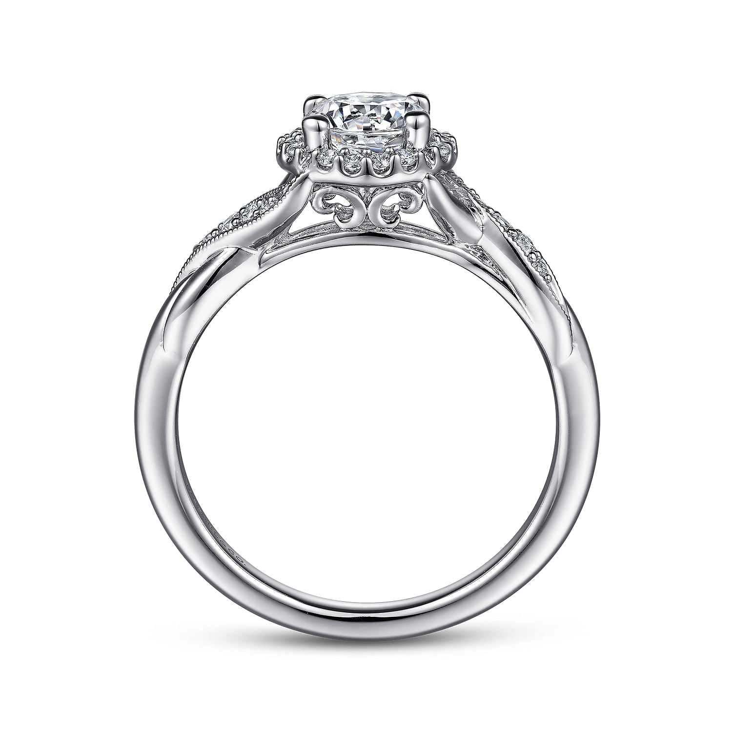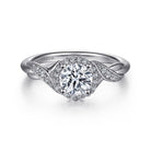 Vintage Inspired 14K White Gold Round Halo Diamond Engagement Ring