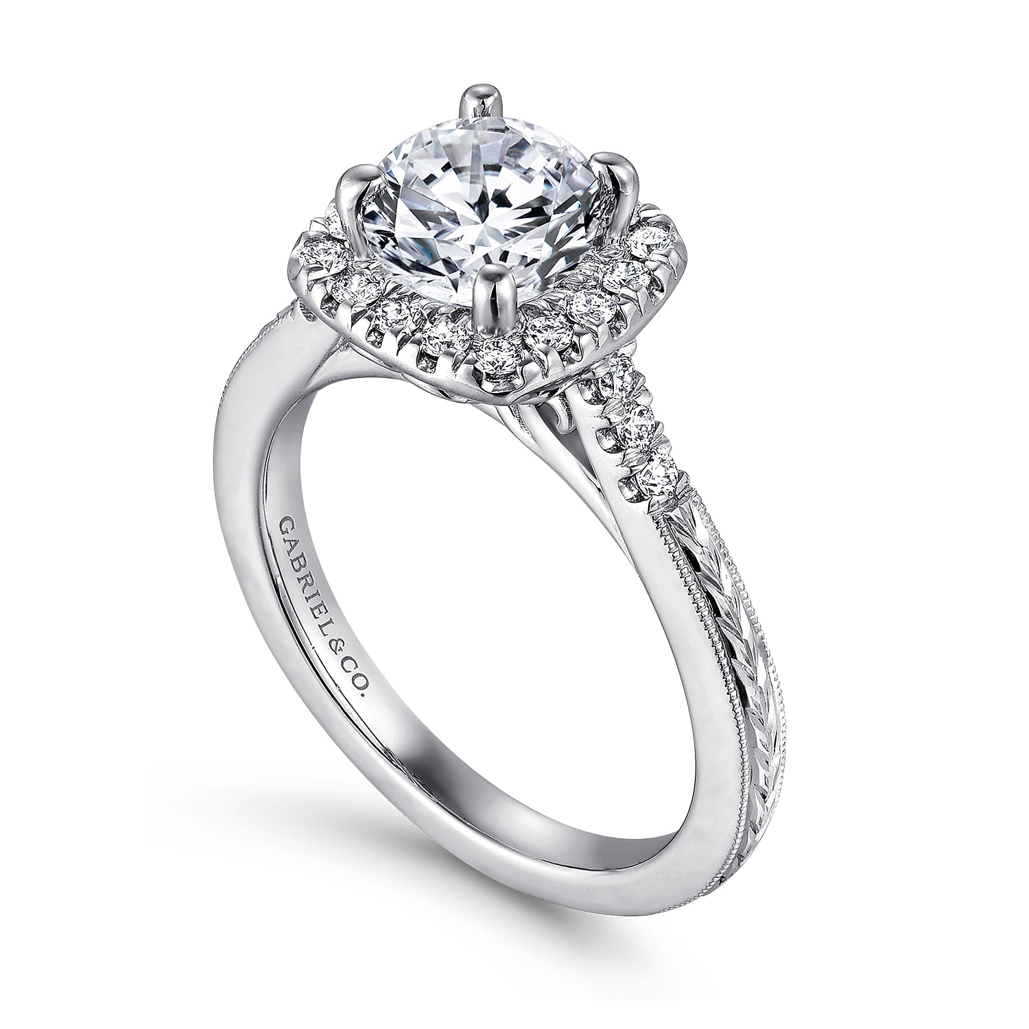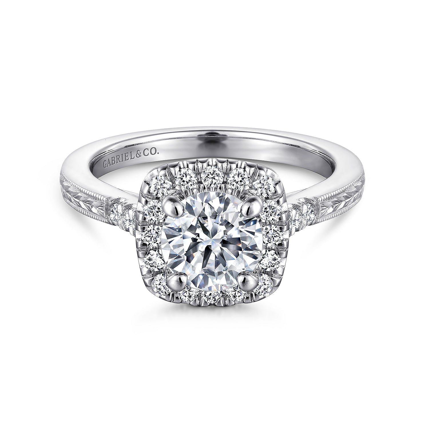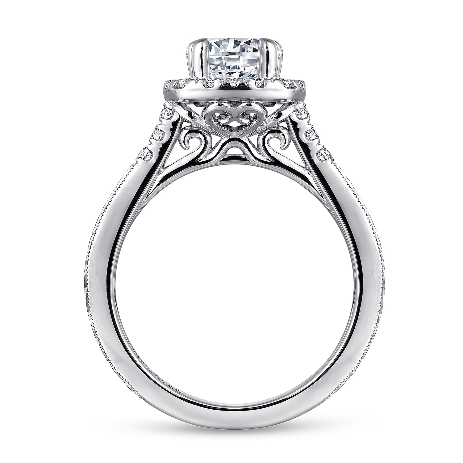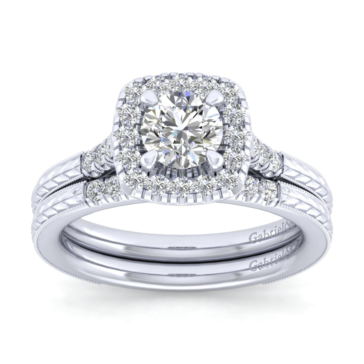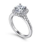 Vintage Inspired 14K White Gold Round Halo Diamond Engagement Ring
