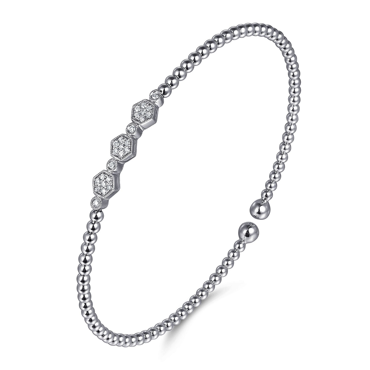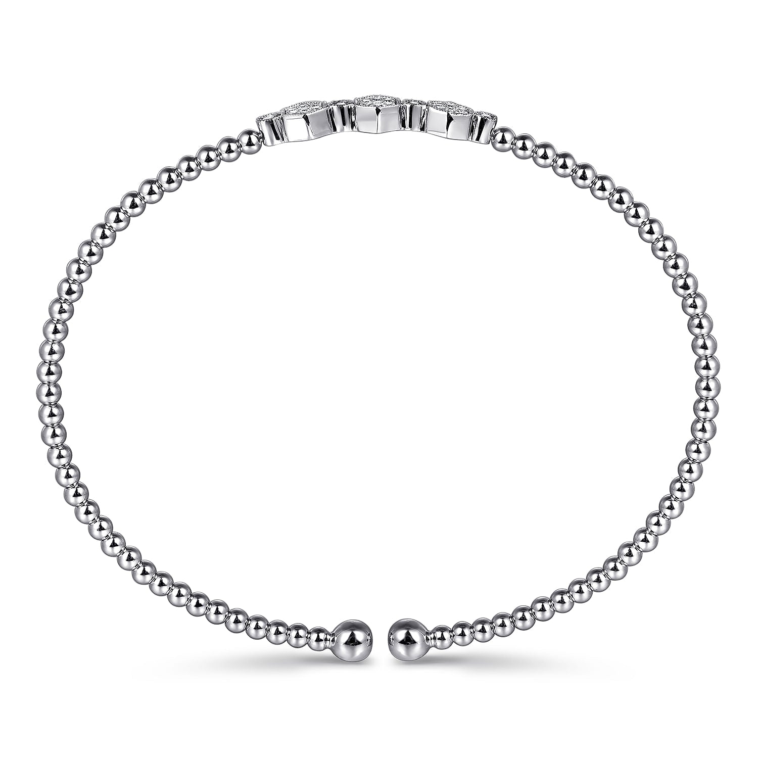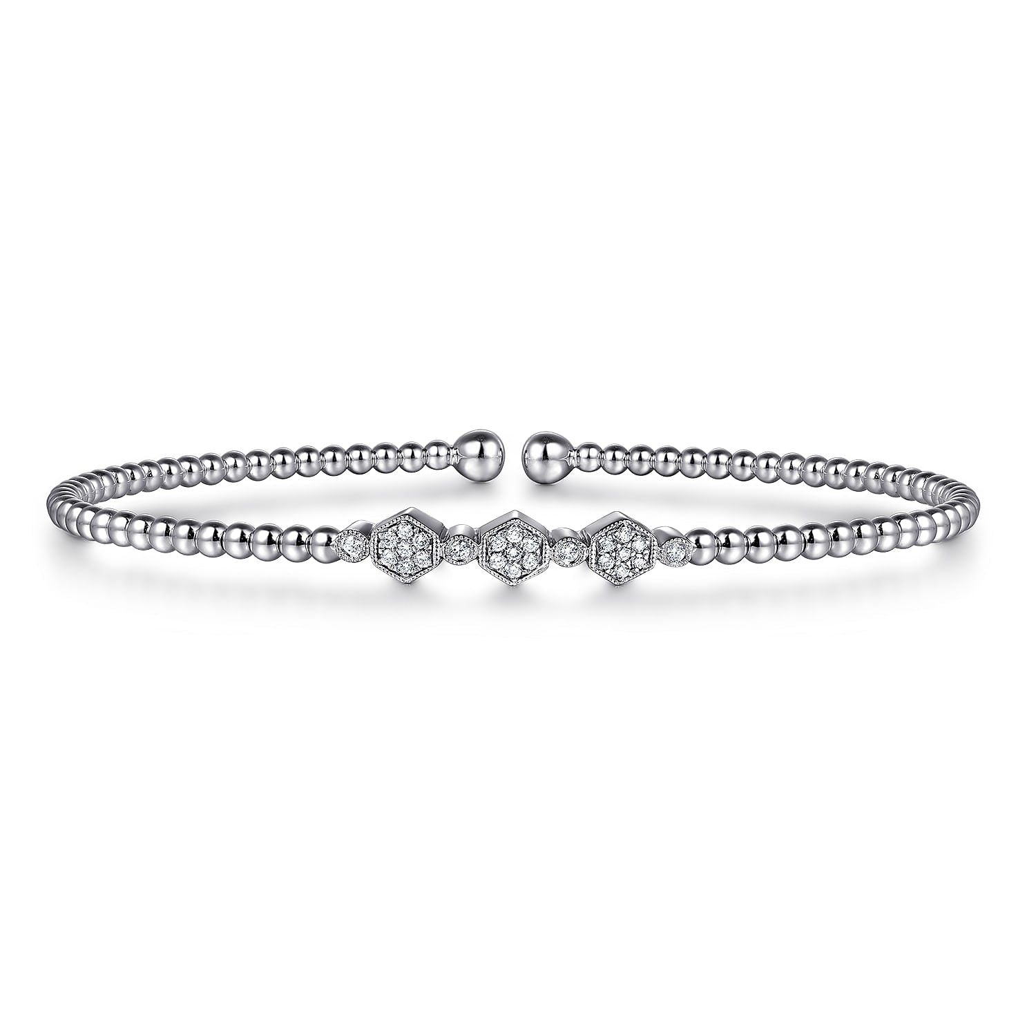 14K White Gold Bujukan Bead and Hexagon Cluster Diamond Bangle