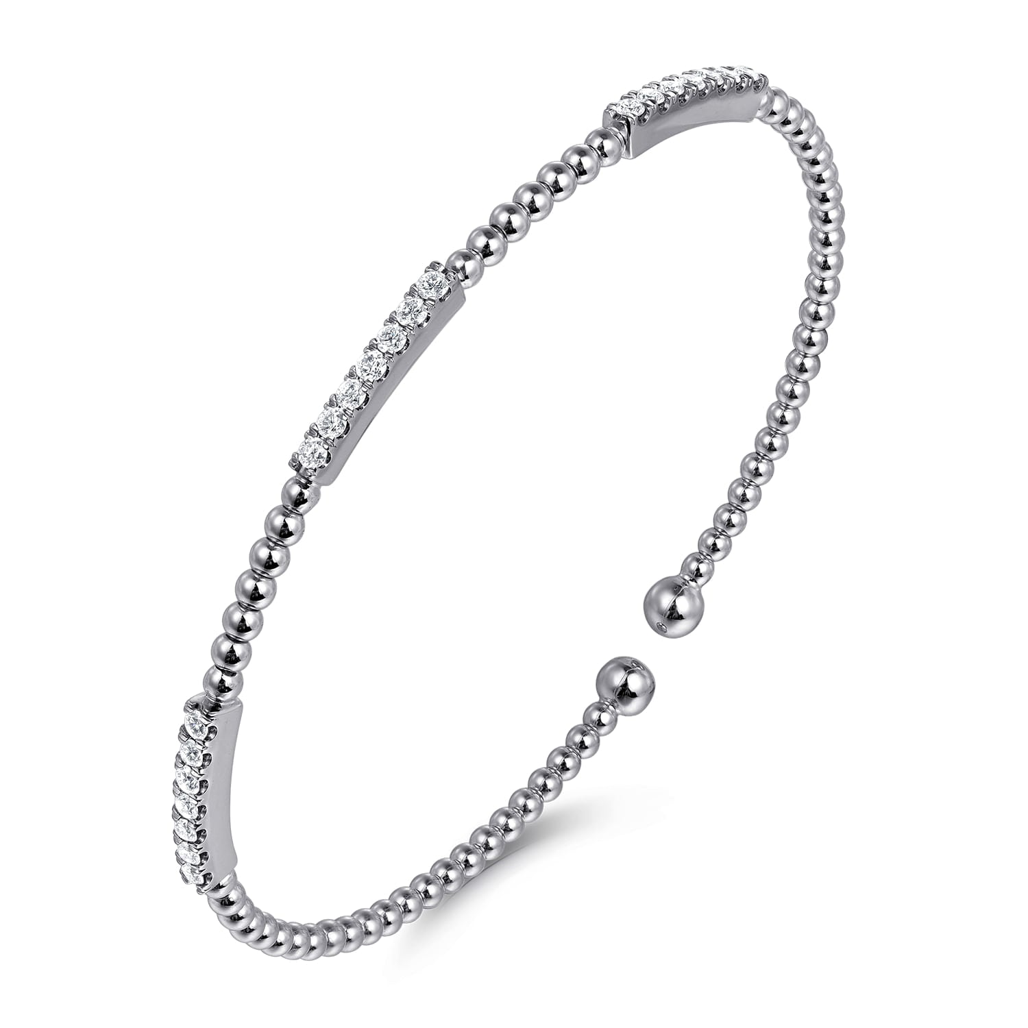 You're reviewing: 14K White Gold Bujukan Bead Cuff Bracelet with Diamond Pavé Stations
