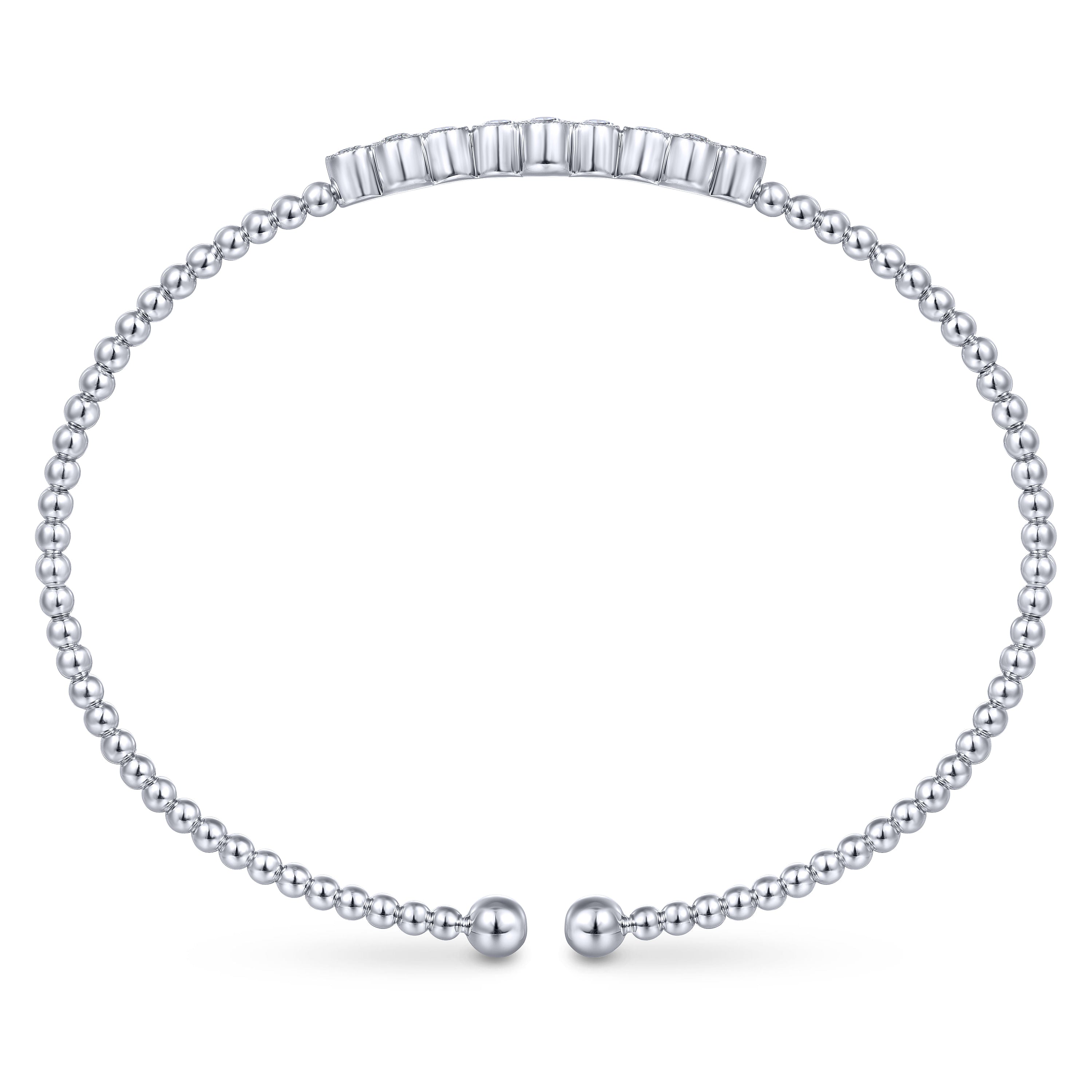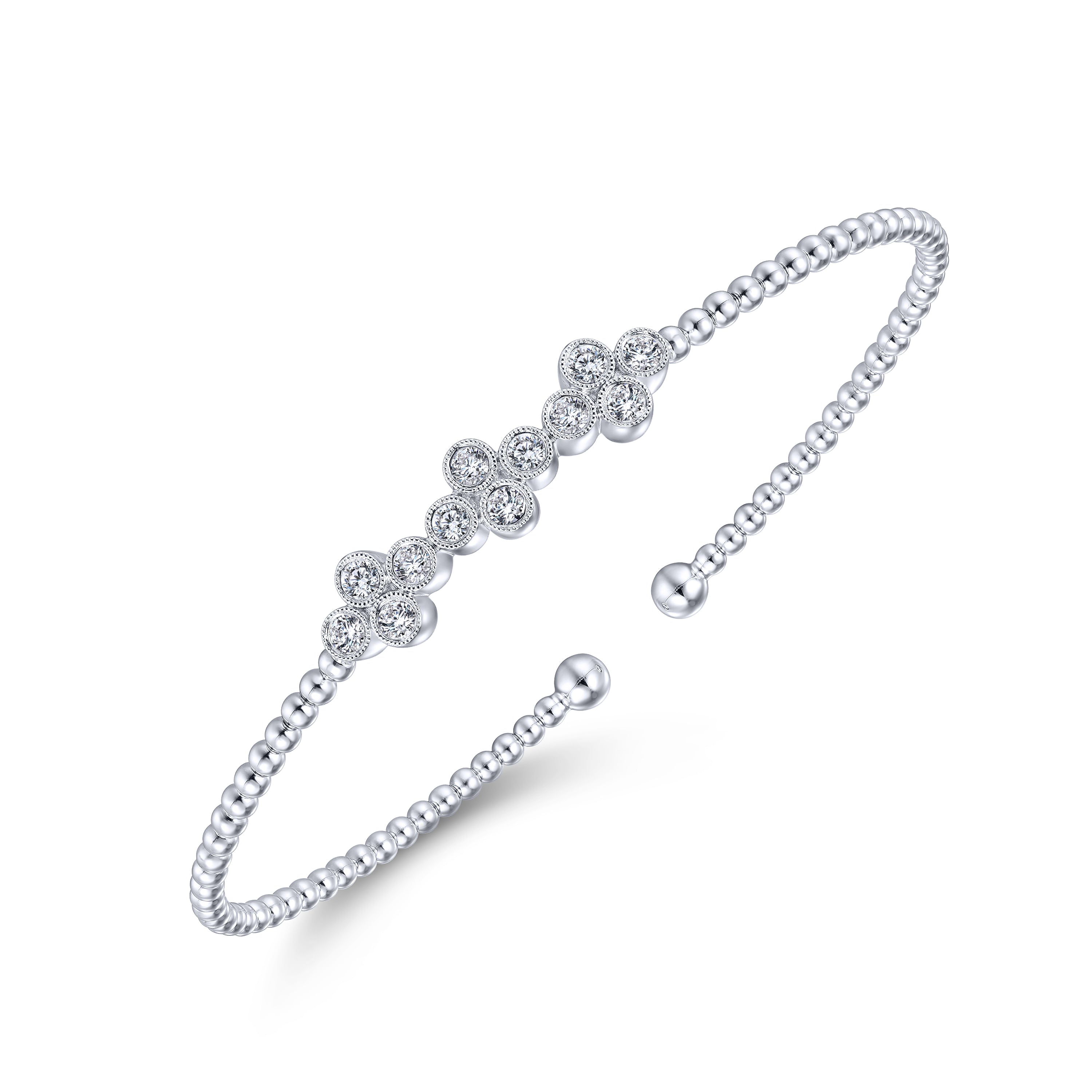 You're reviewing: 14K White Gold Bujukan Bead Cuff Bracelet with Three Quatrefoil Diamond Stations