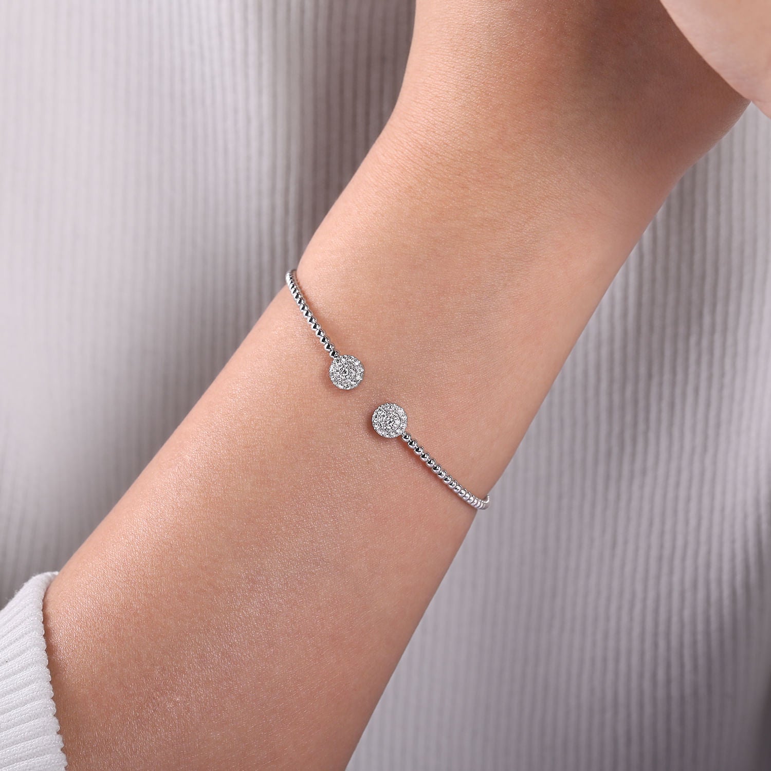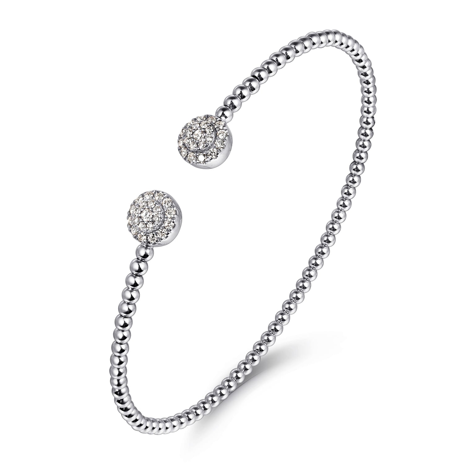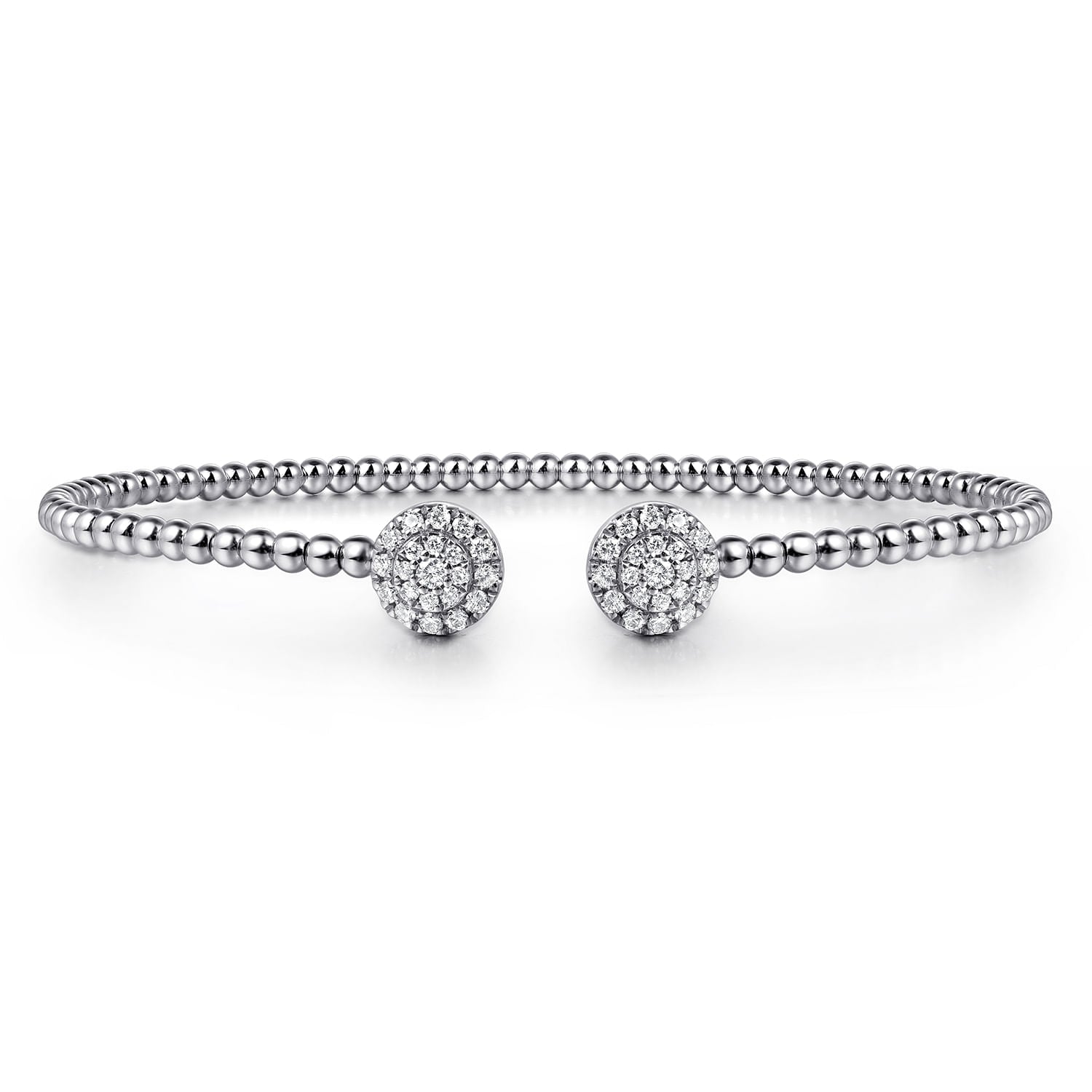 14K White Gold Bujukan Bead Split Cuff Bracelet with Round Pavé Diamond Discs