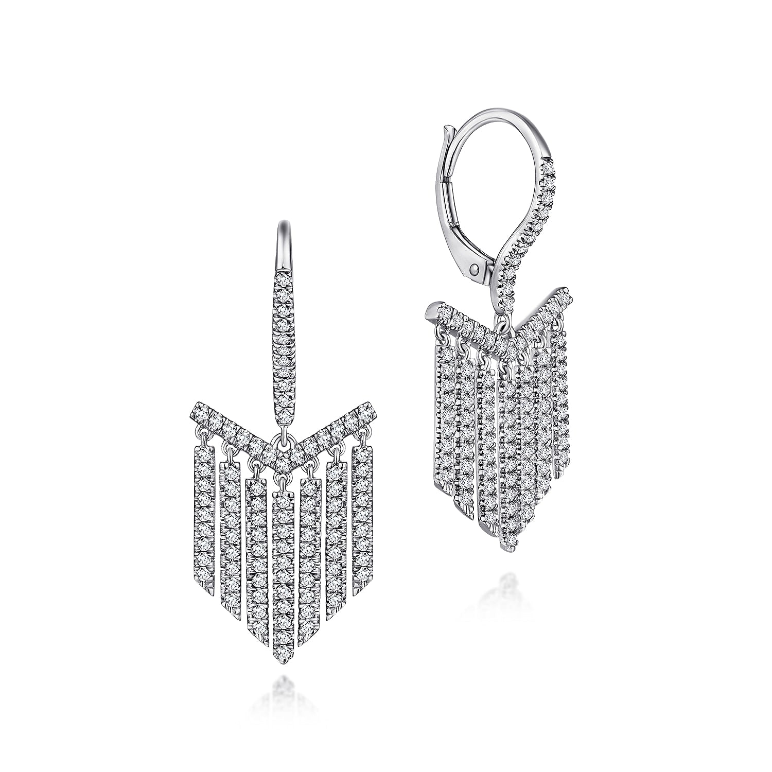 14K White Gold Cascading Diamond Drop Leverback Earrings