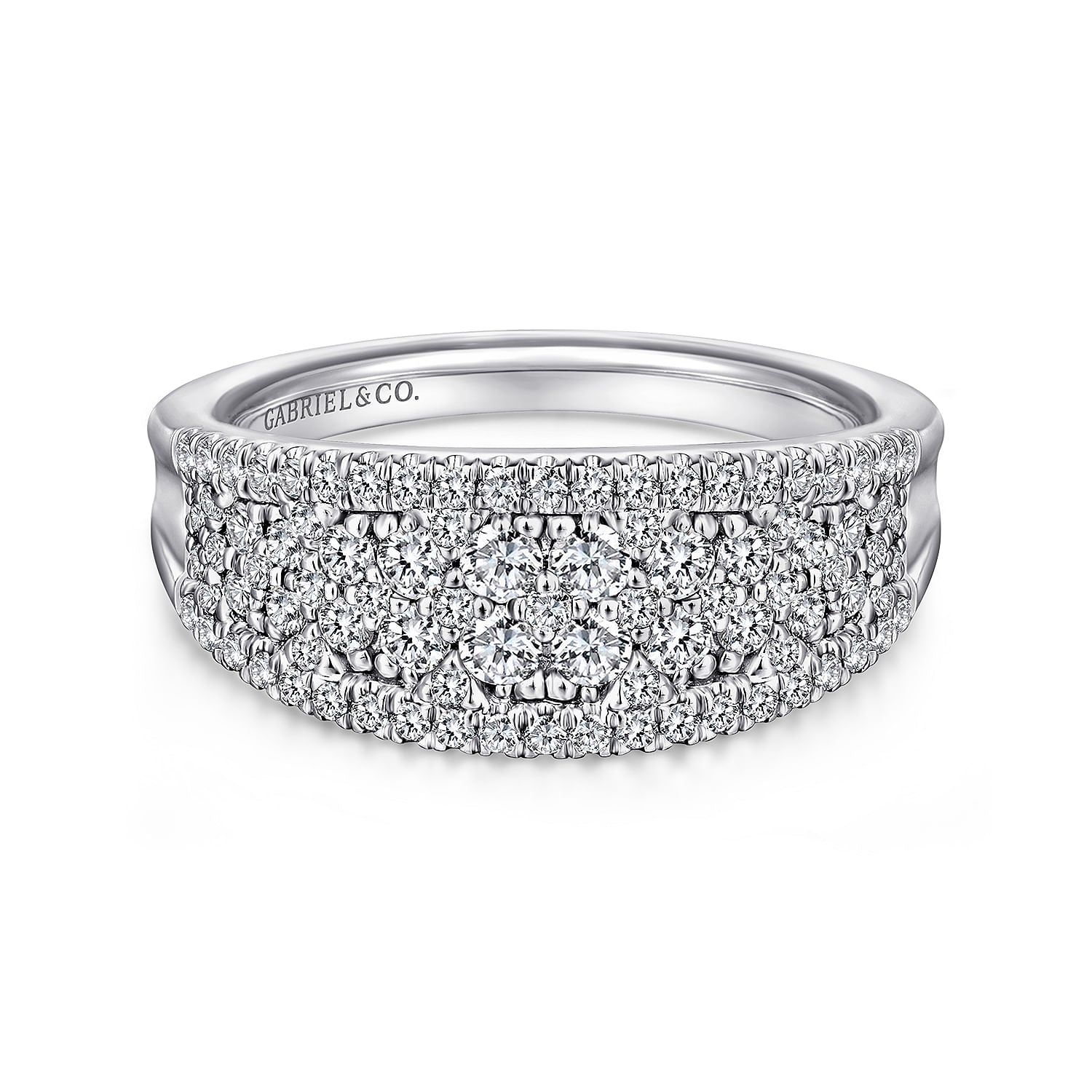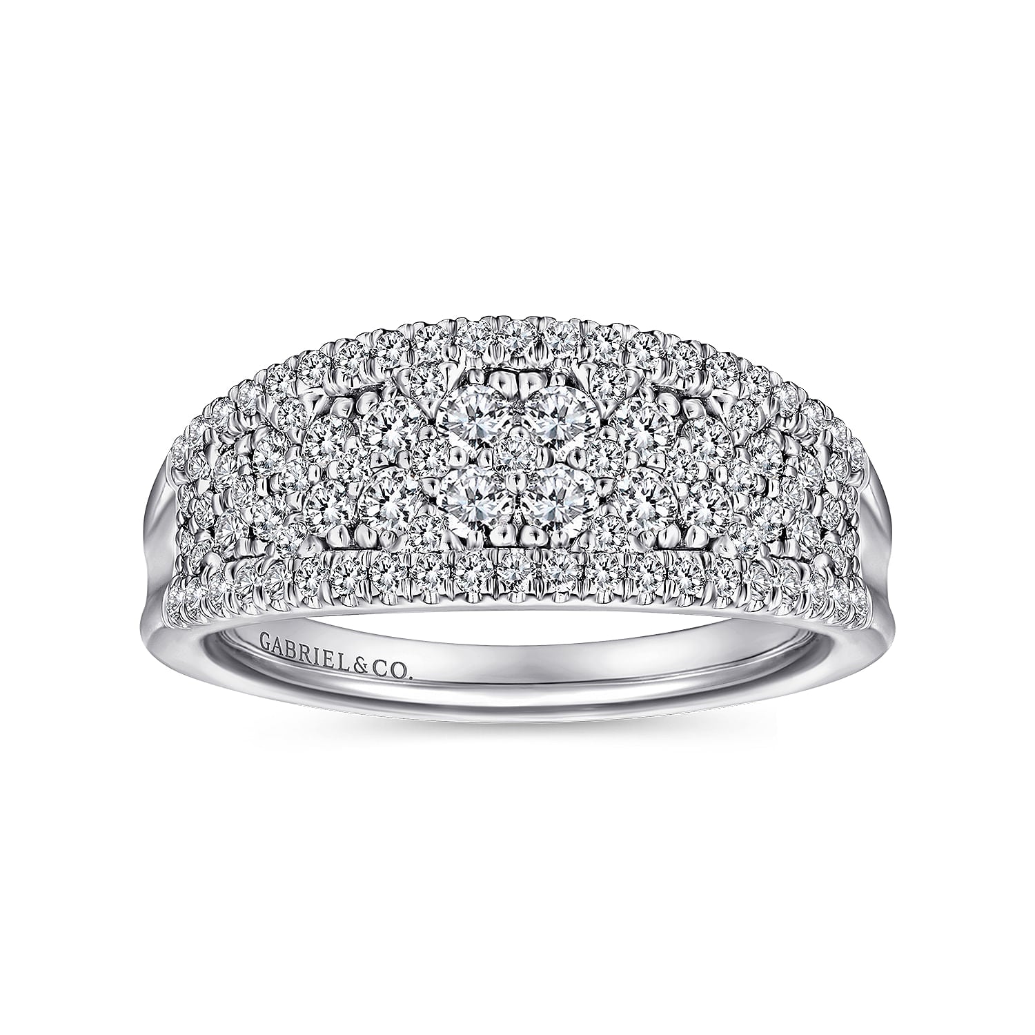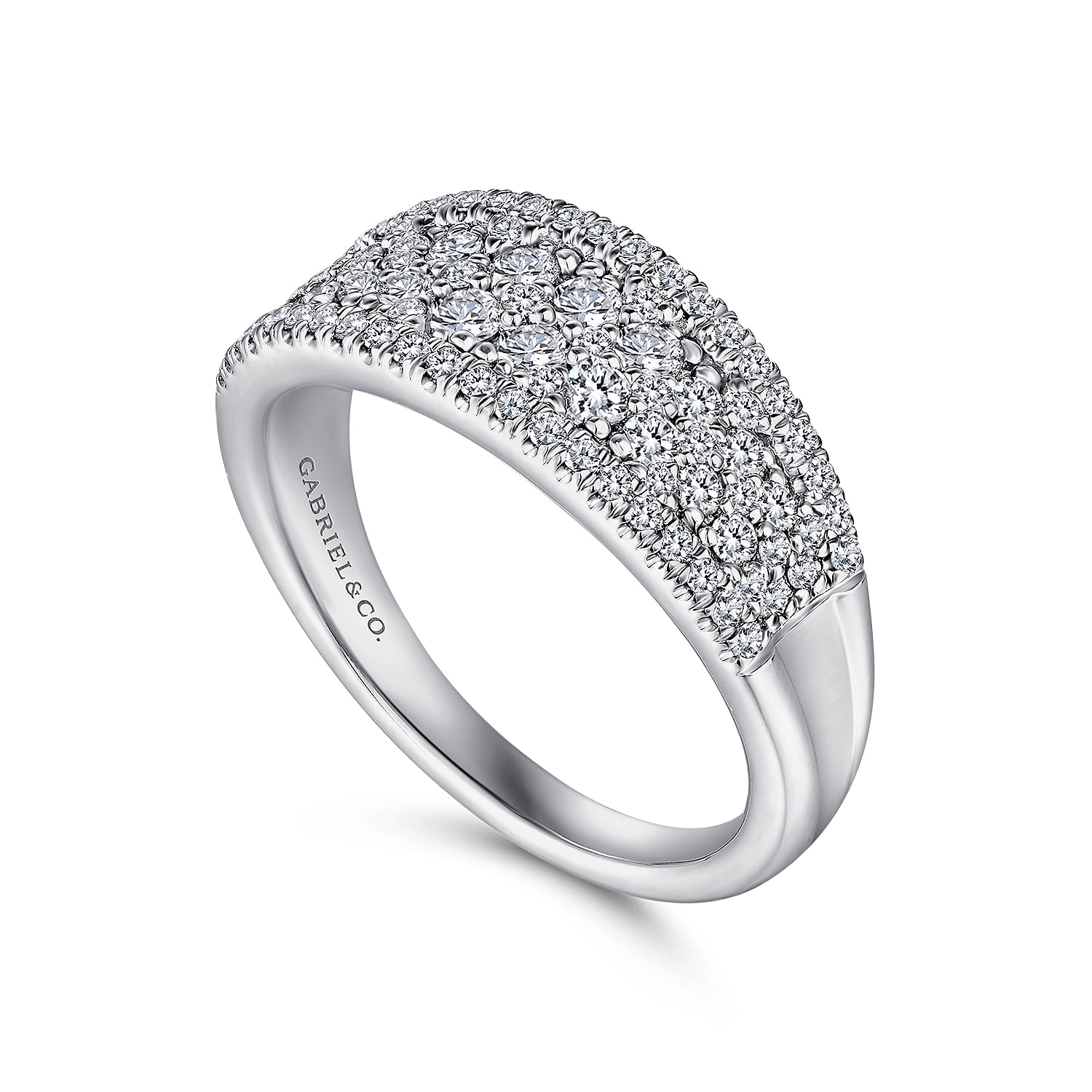 14K White Gold Curved Pavé Diamond Ring