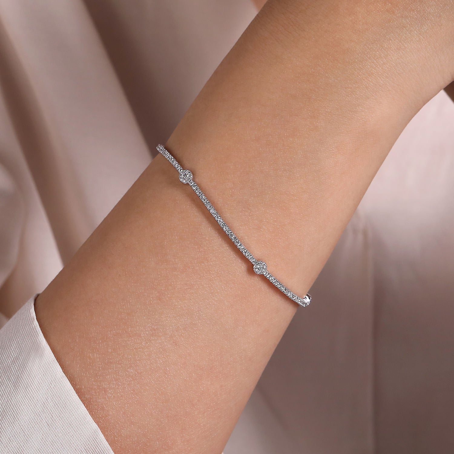 You're reviewing: 14K White Gold Diamond Tennis Bracelet with Round Cluster Stations