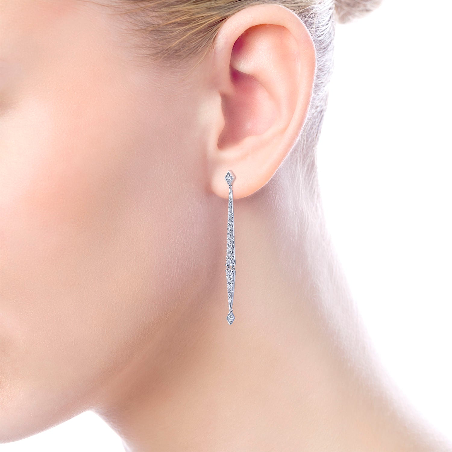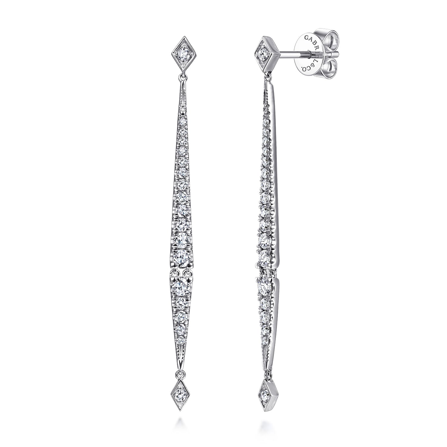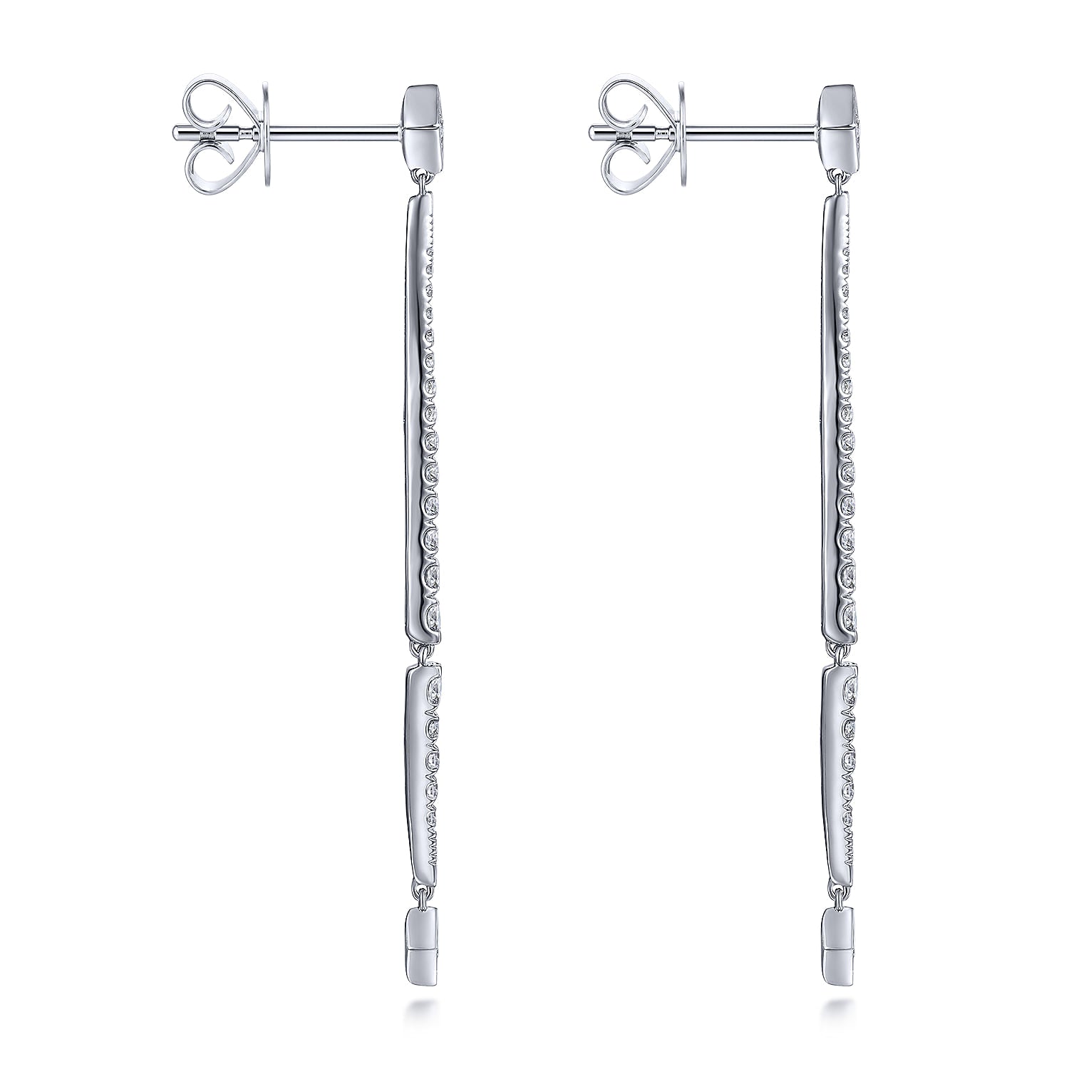 14K White Gold Long Diamond Bar Drop Earrings