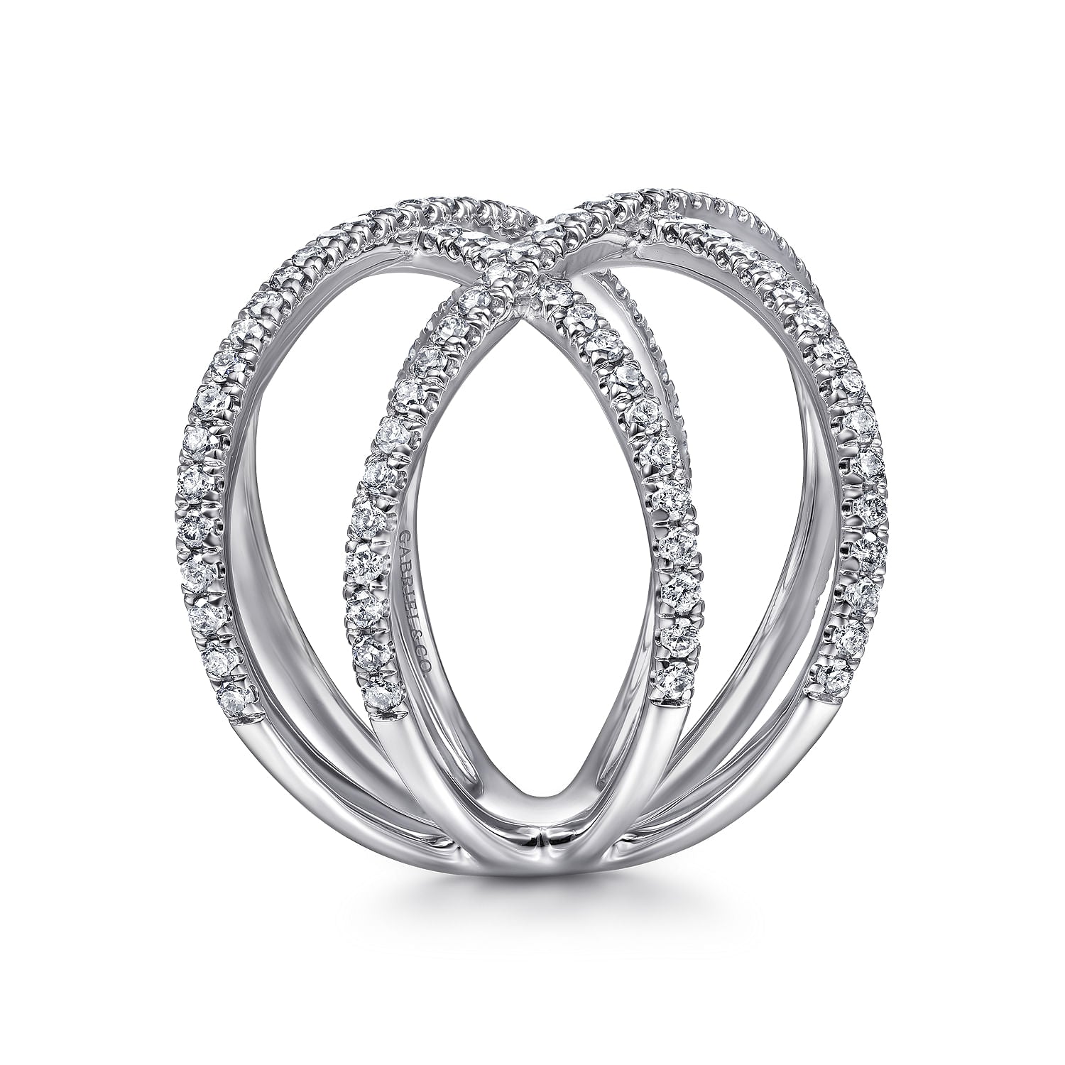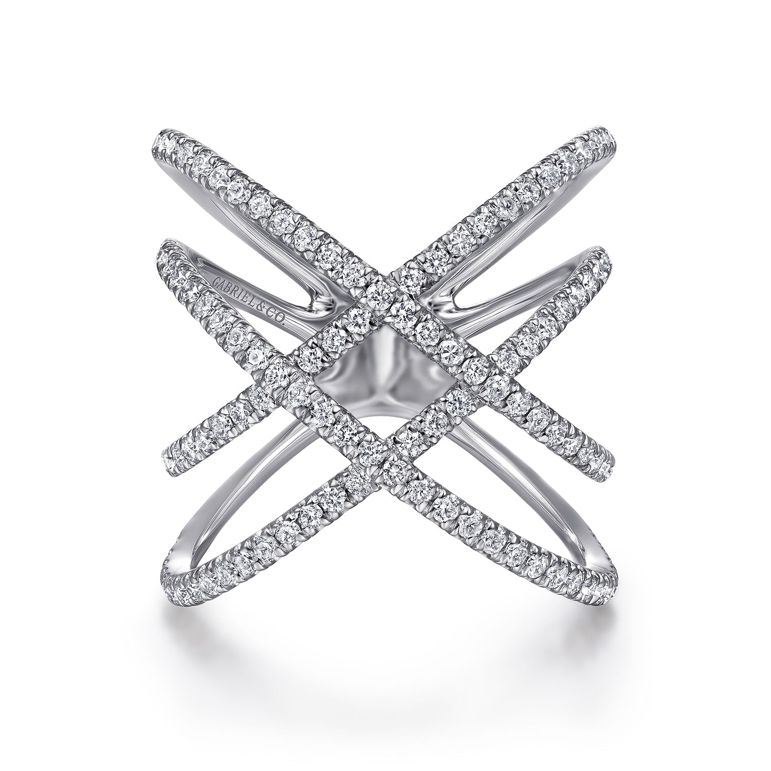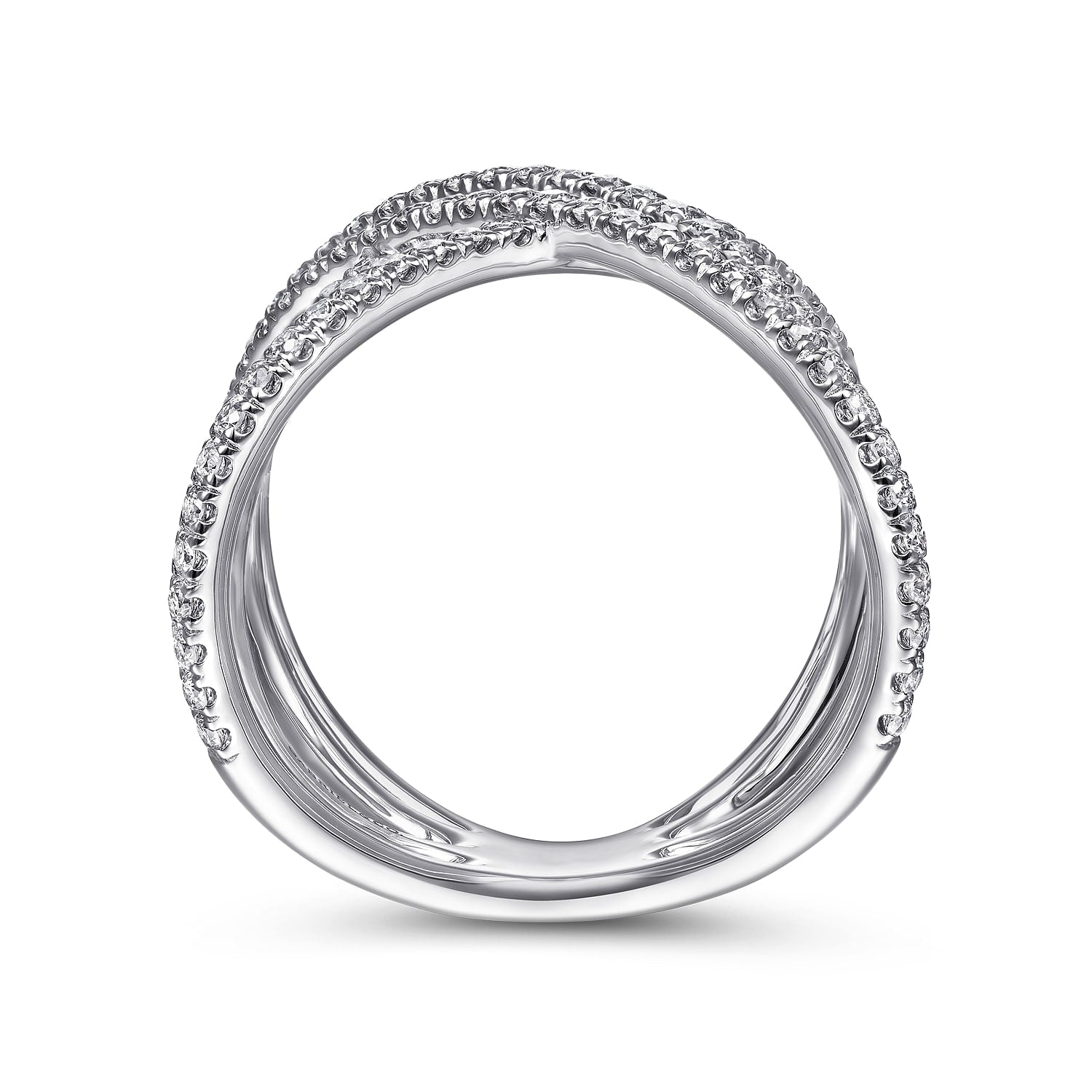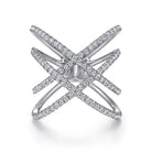 14K White Gold Multi Row Diamond Criss Cross Ring