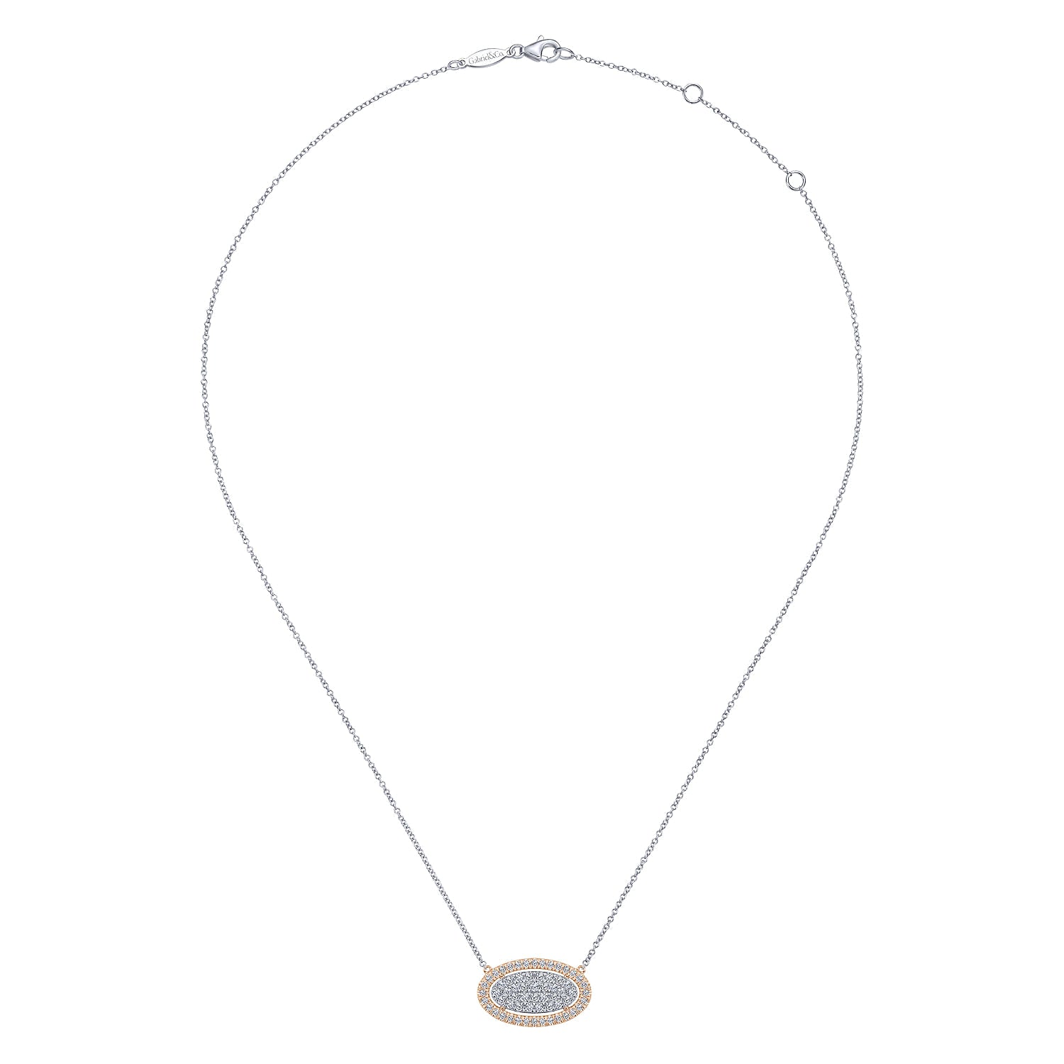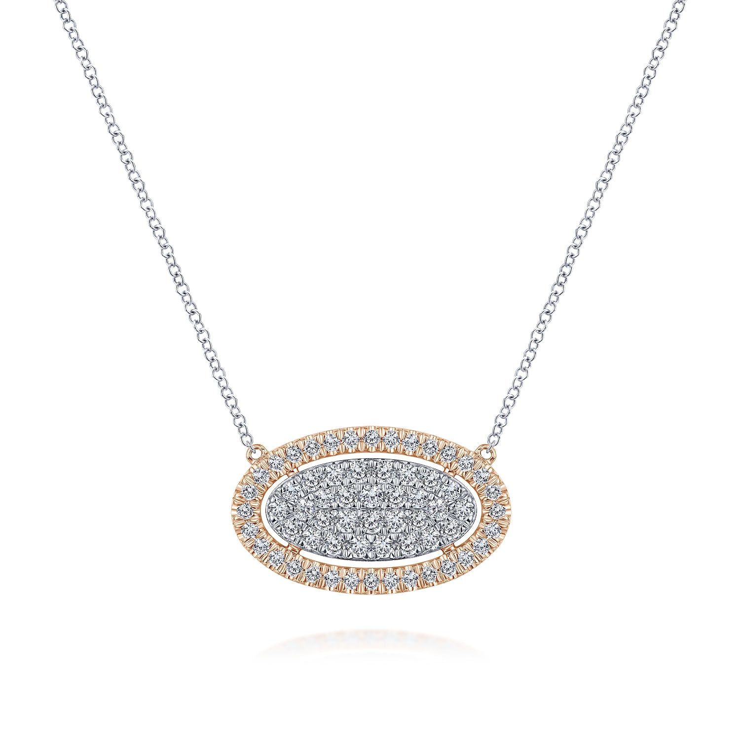 14k White-Rose Gold Pavé Diamond Oval Pendant Necklace