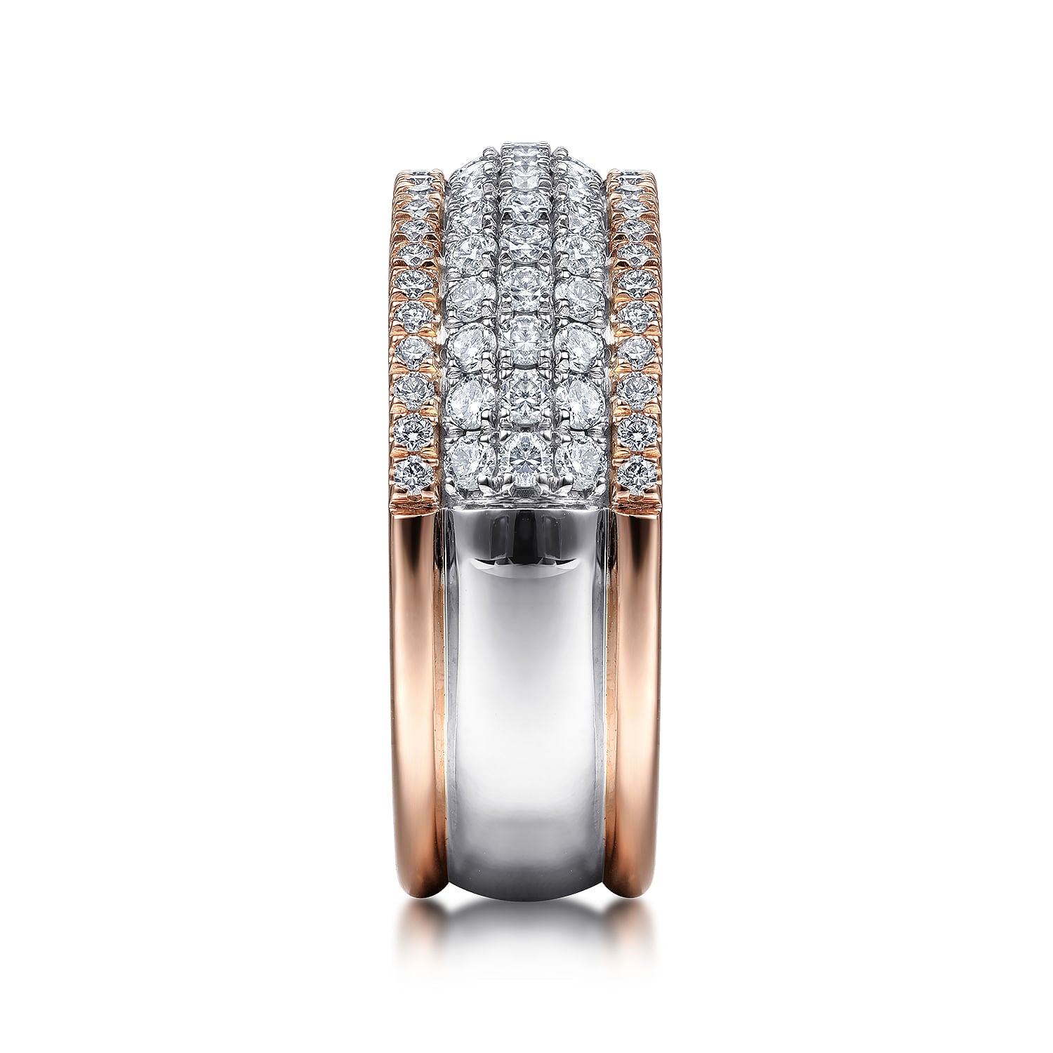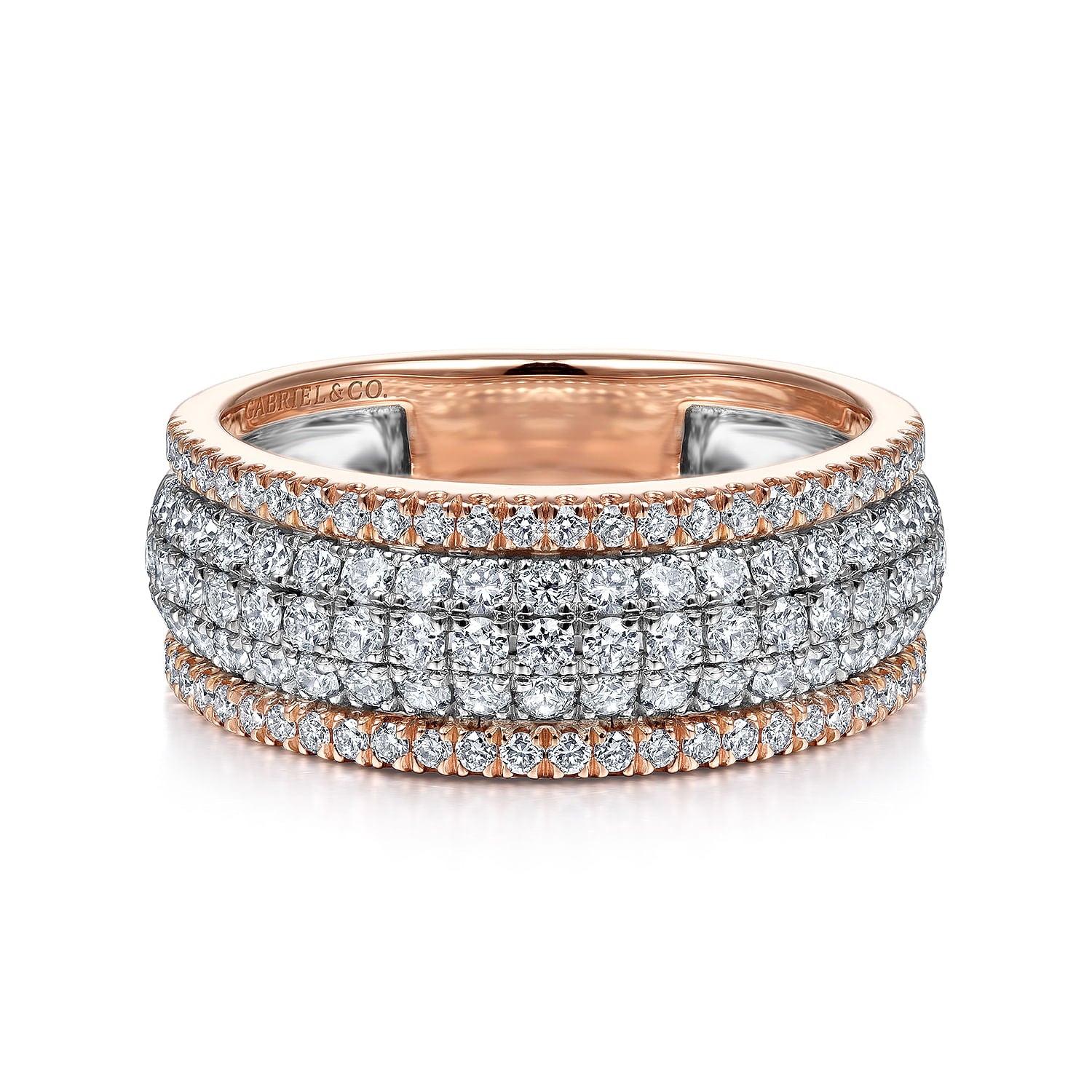14K White-Rose Gold Pavé Diamond Wide Band Ring