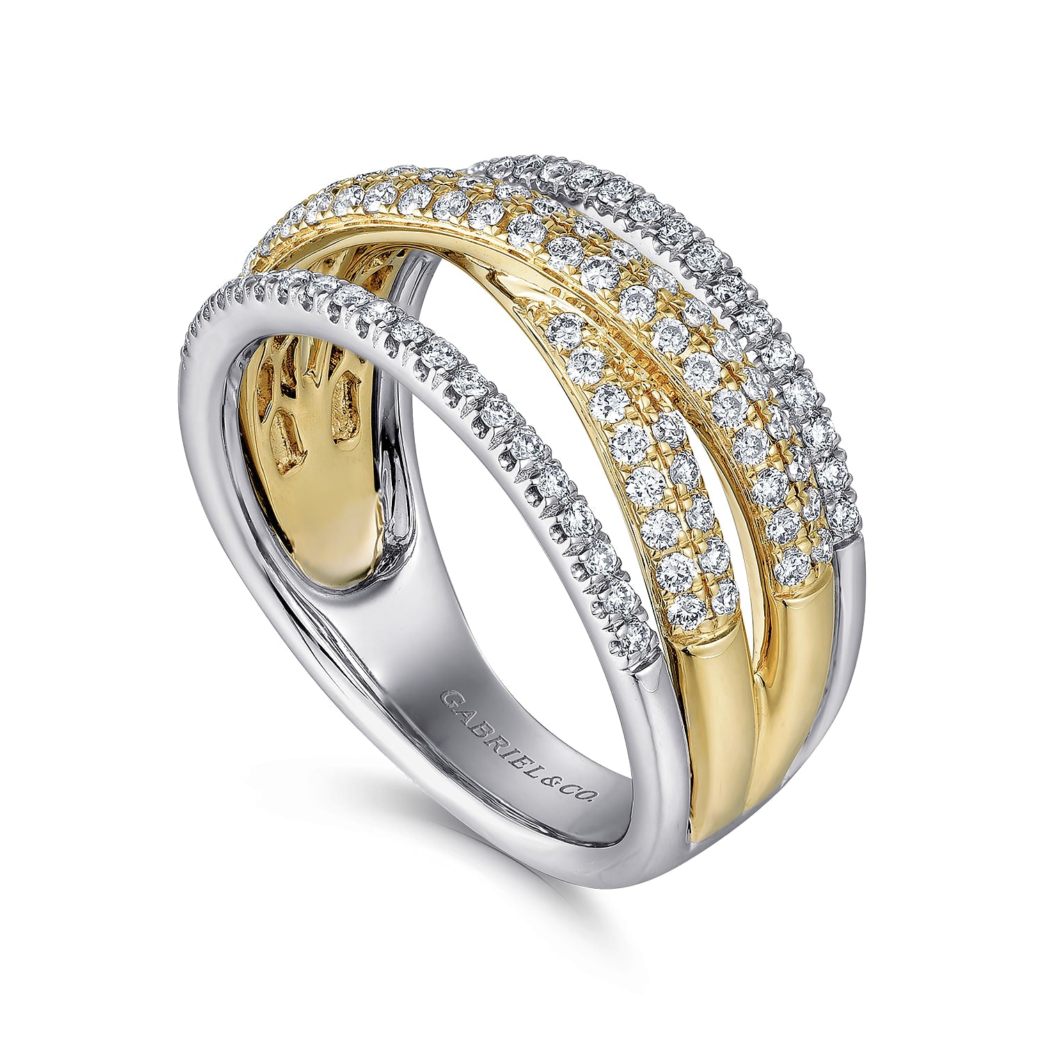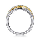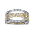 14K Yellow and White Gold Criss Crossing Multi Row Diamond Ring