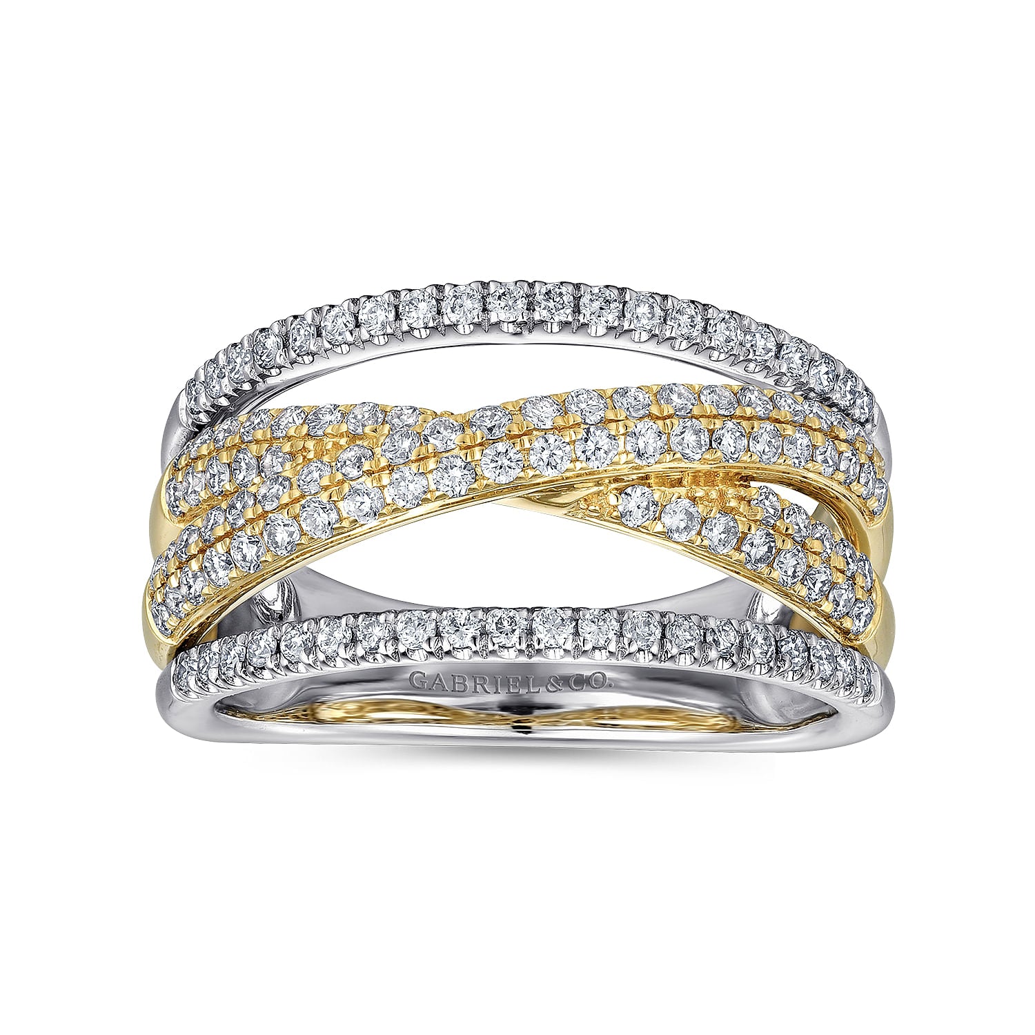 You're reviewing: 14K Yellow and White Gold Criss Crossing Multi Row Diamond Ring