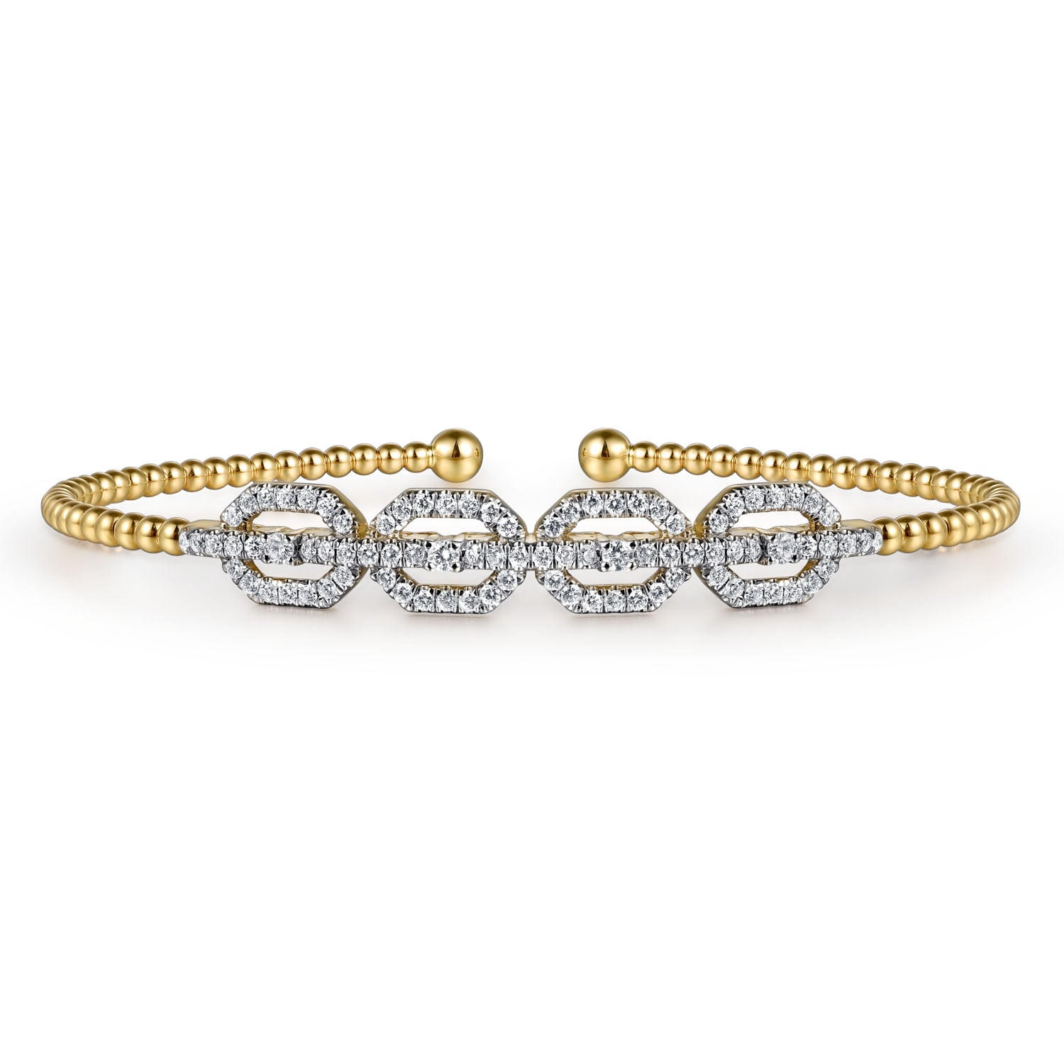 14K Yellow Gold Bujukan Bead Cuff Bracelet with Diamond Pavé Links