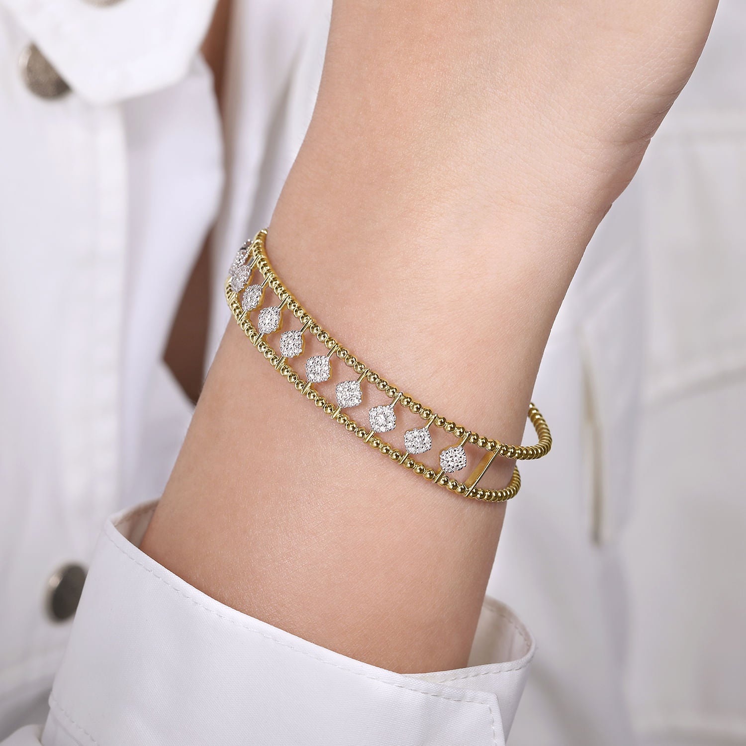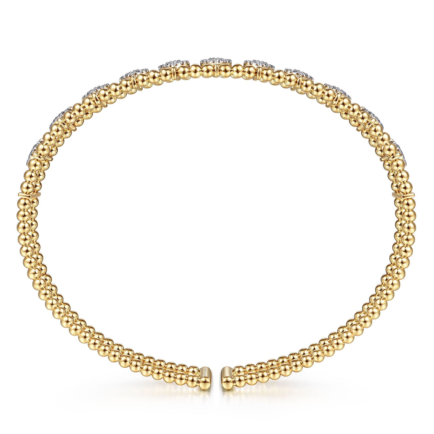 14K Yellow Gold Bujukan Bead Cuff Bracelet with Pavé Diamond Connectors