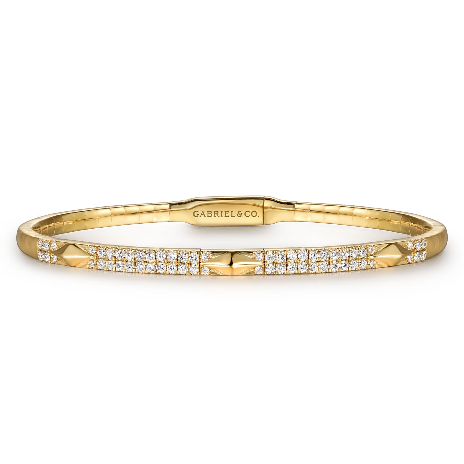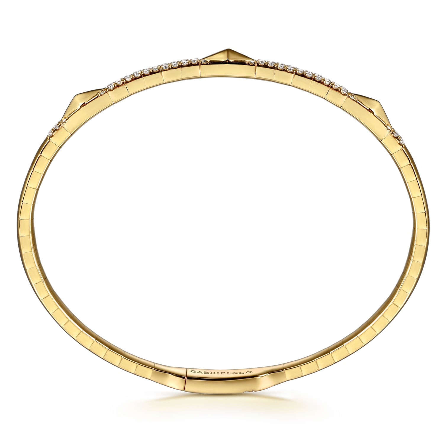 14K Yellow Gold Diamond Bangle with Pyramid Rhombus Stations