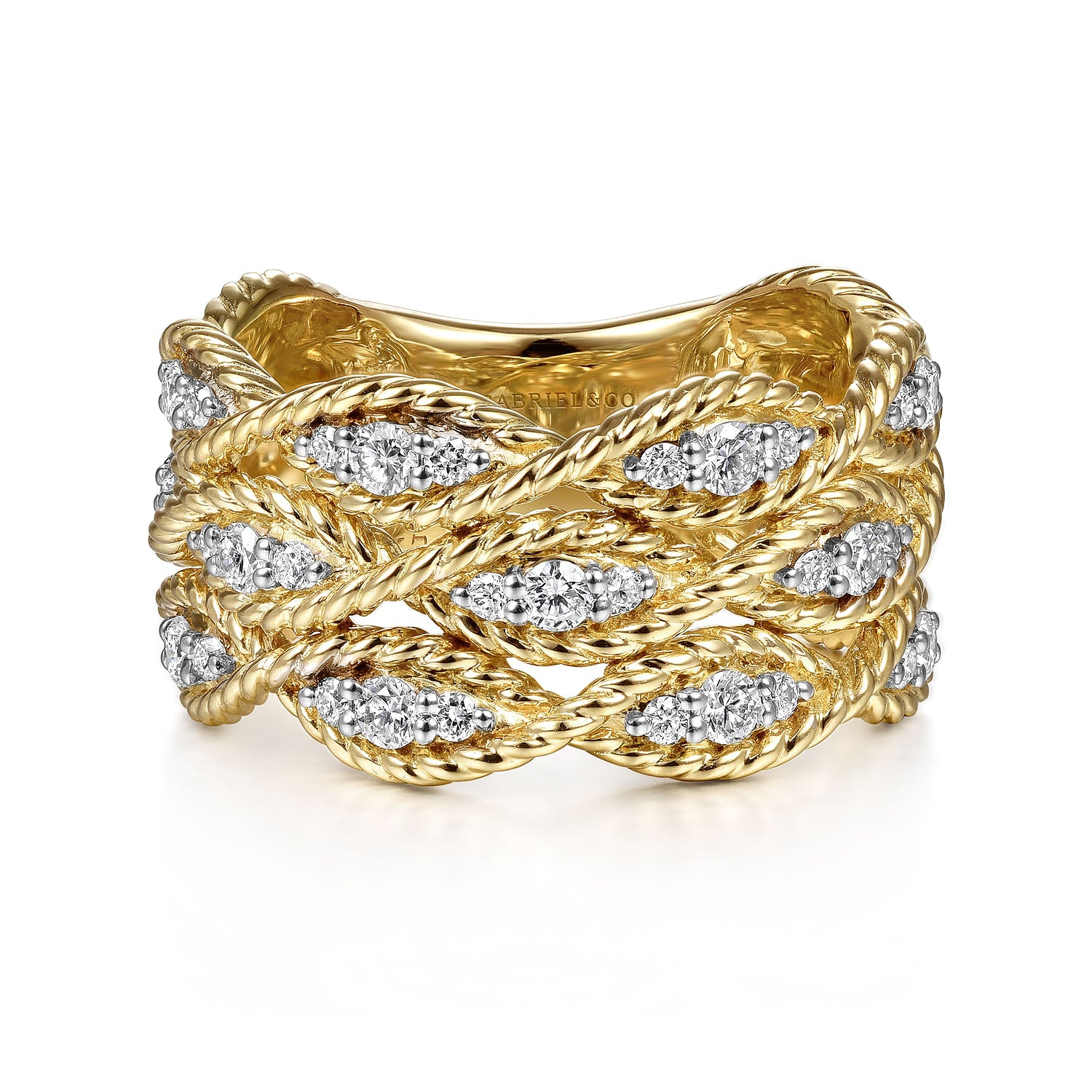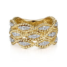 14K Yellow Gold Twisted Braided Diamond Wide Band Ring