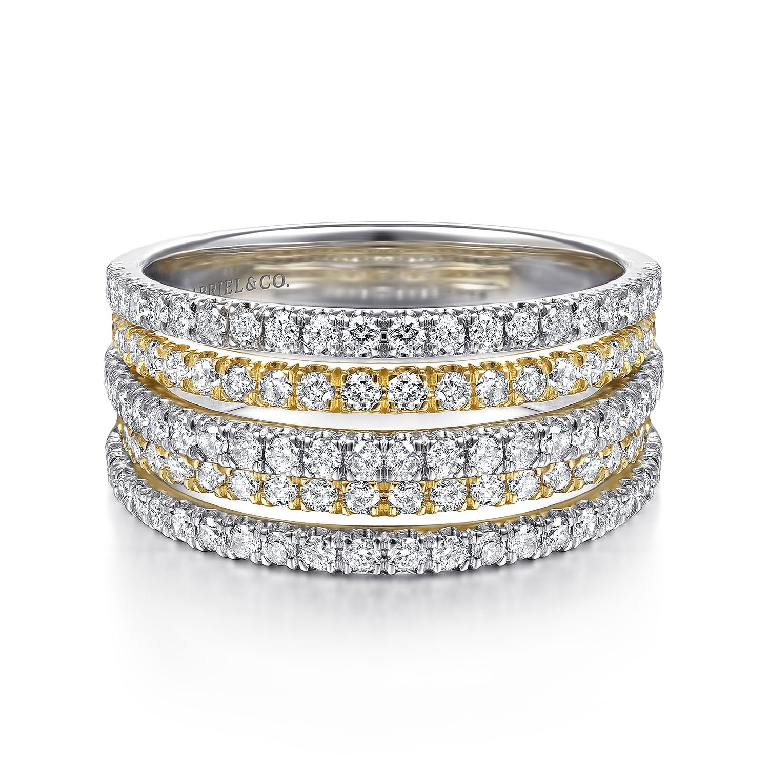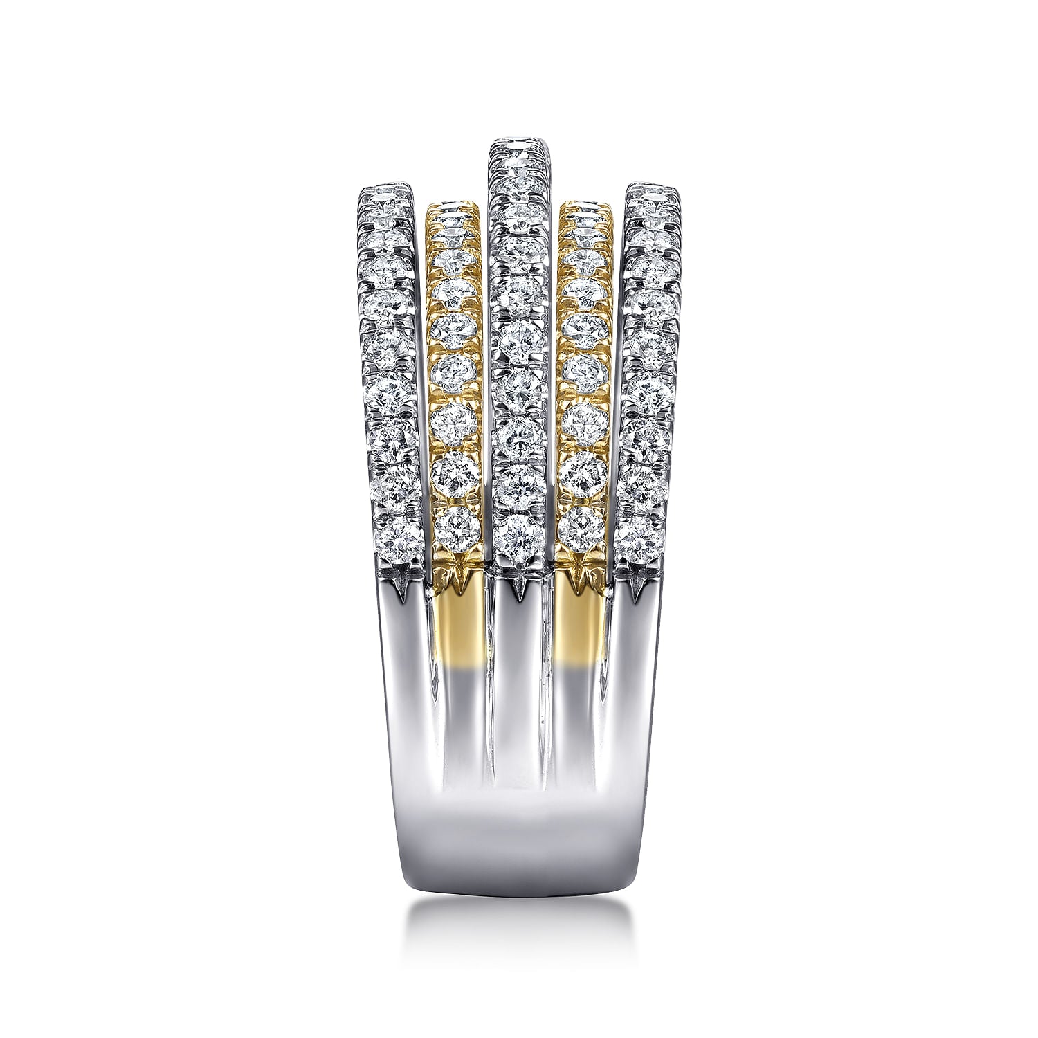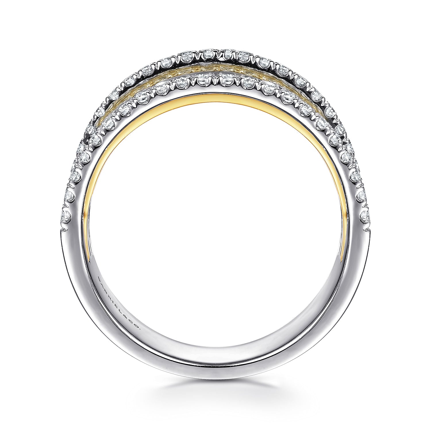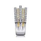 14K Yellow-White Gold Layered Wide Band Diamond Ring