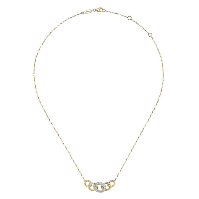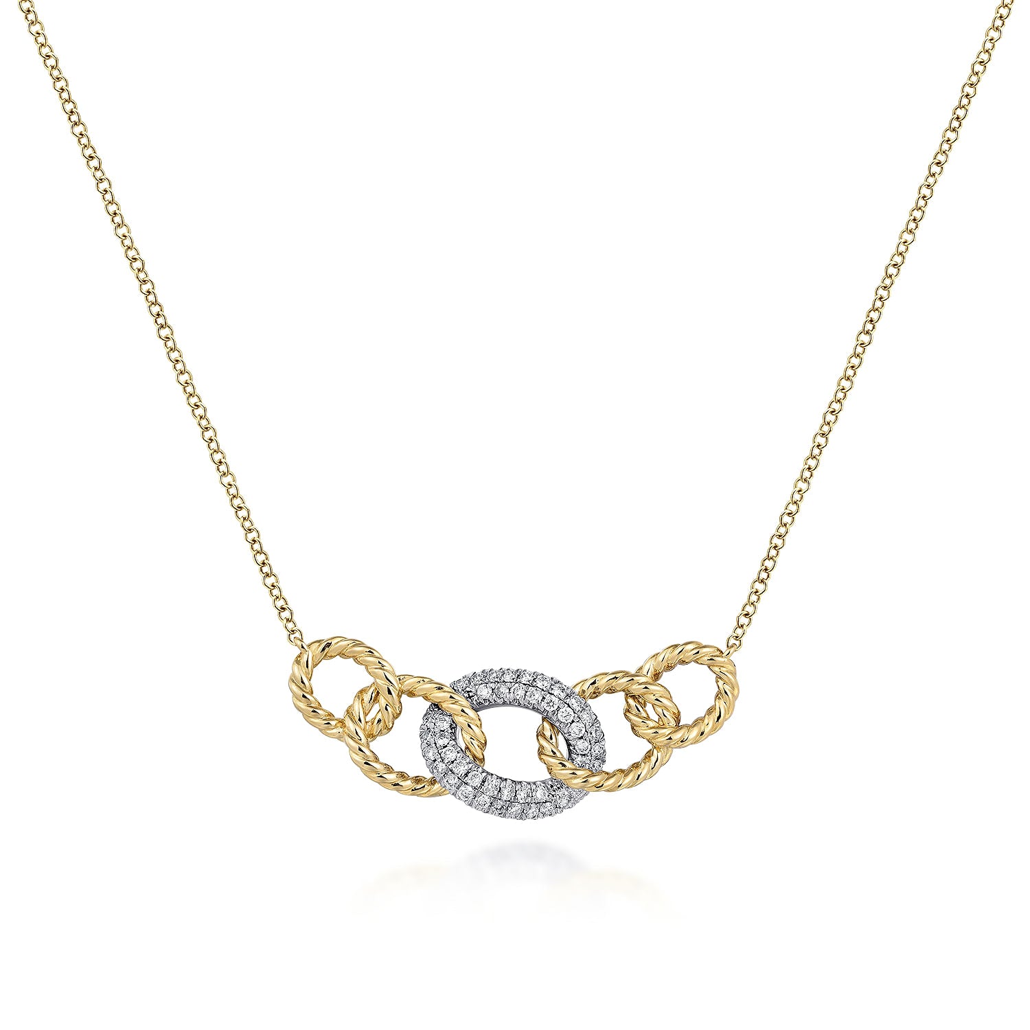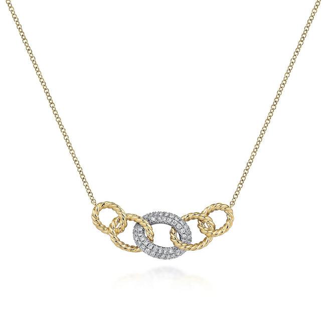 You're reviewing: 14K Yellow-White Gold Twisted Rope Link Necklace with Pavé Diamond Link Station