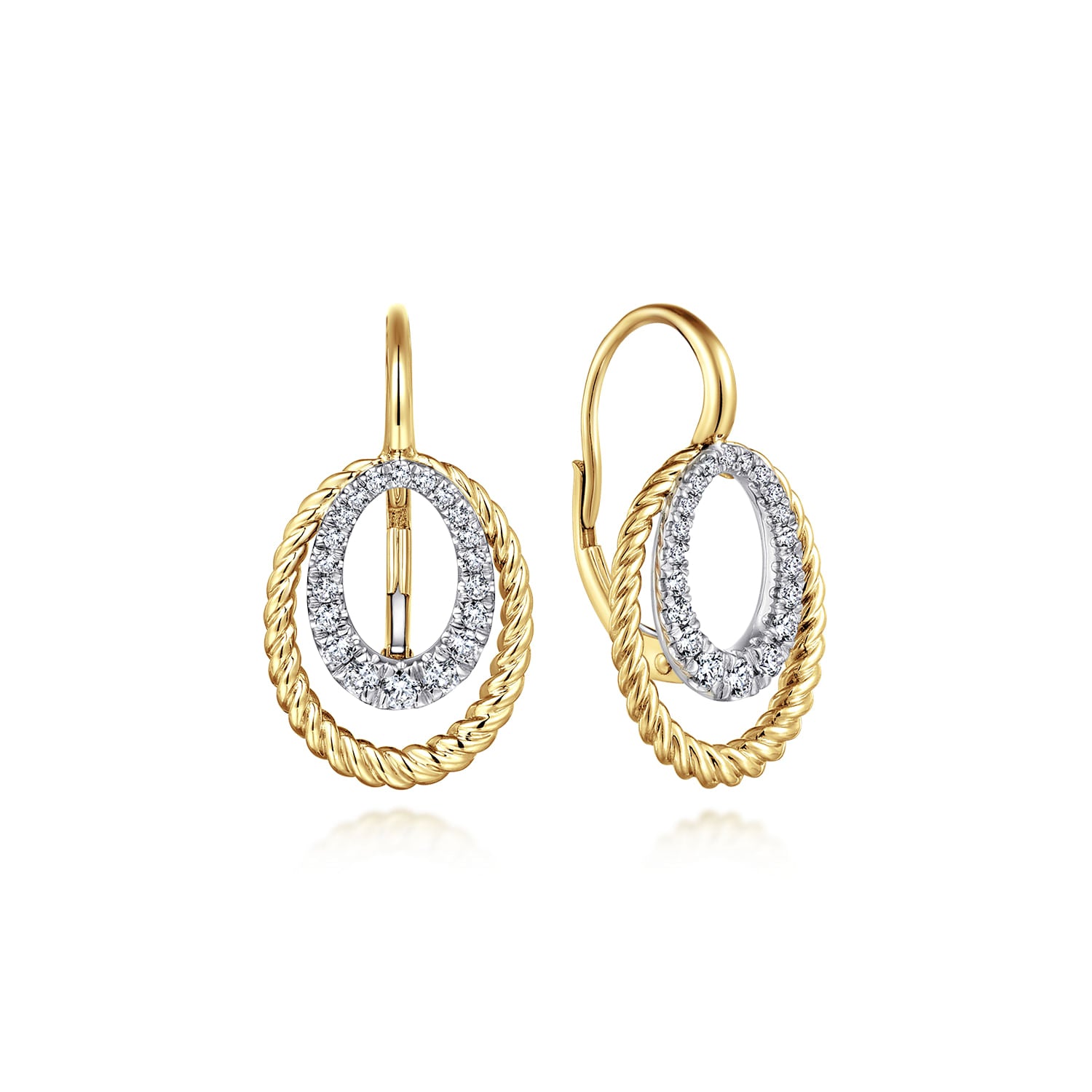 14K Yellow/White Gold Twisted Rope Oval Diamond Drop Earrings
