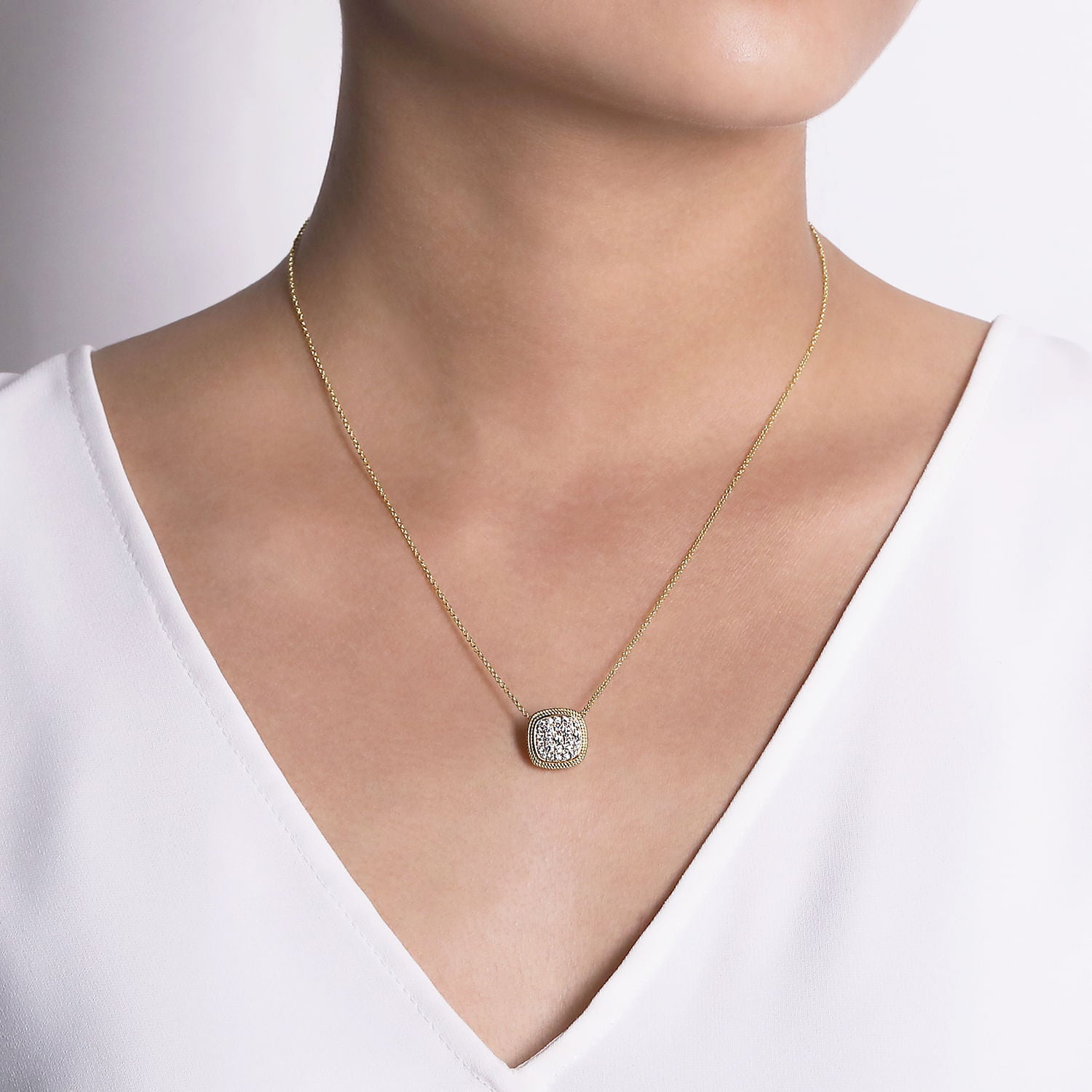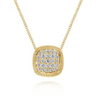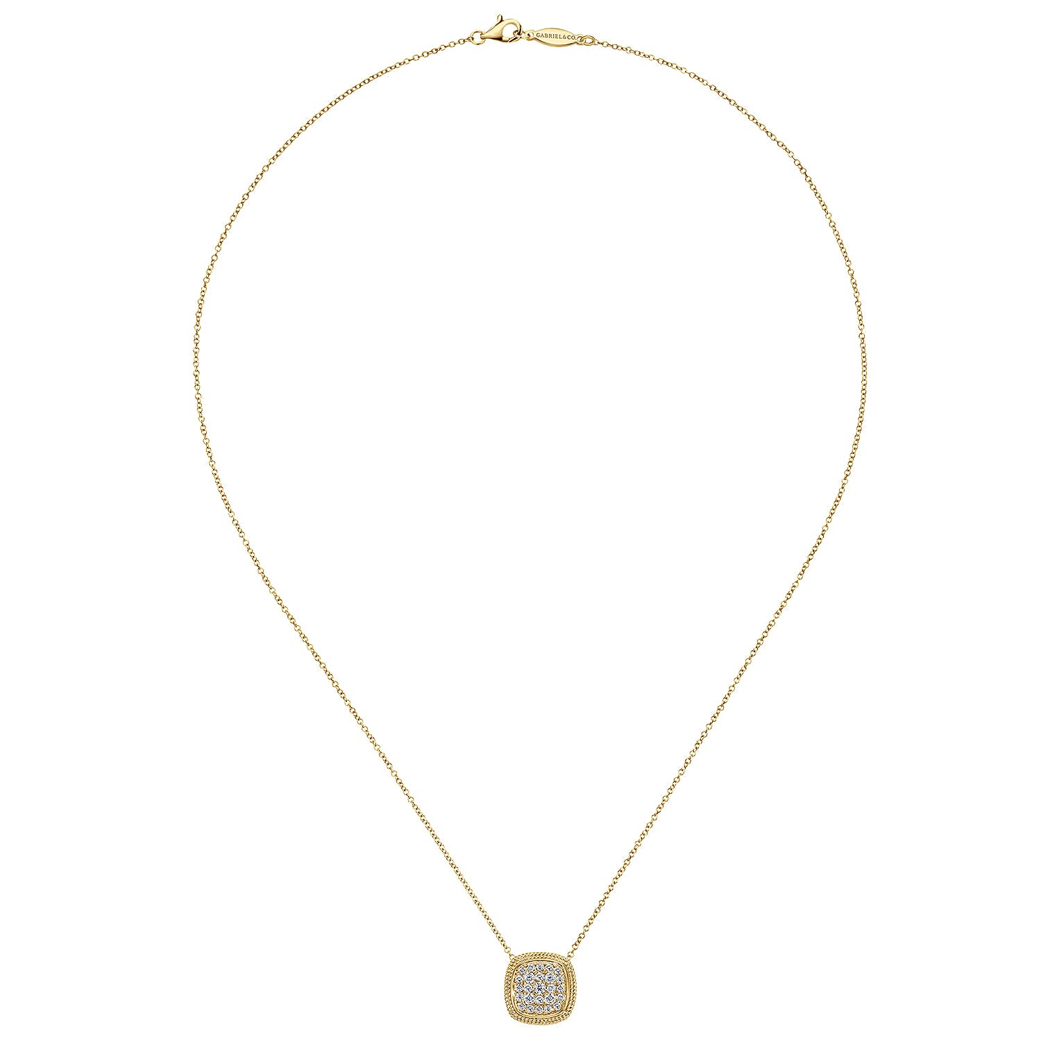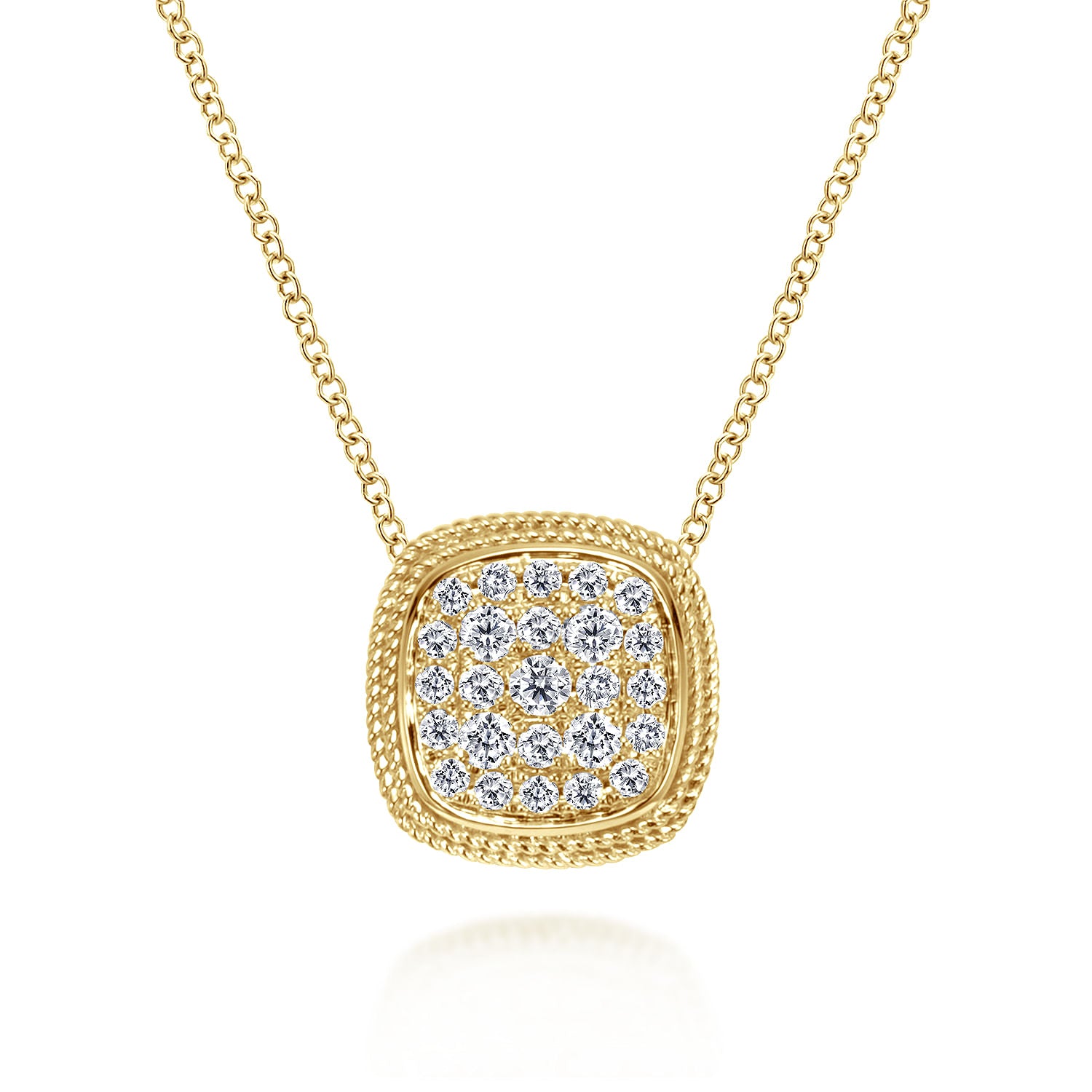 18 inch 14K Yellow Gold Cushion Shape Diamond Pavé Pendant Necklace
