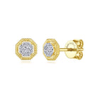 14k Yellow Gold Octagonal Pave Diamond Stud Earrings