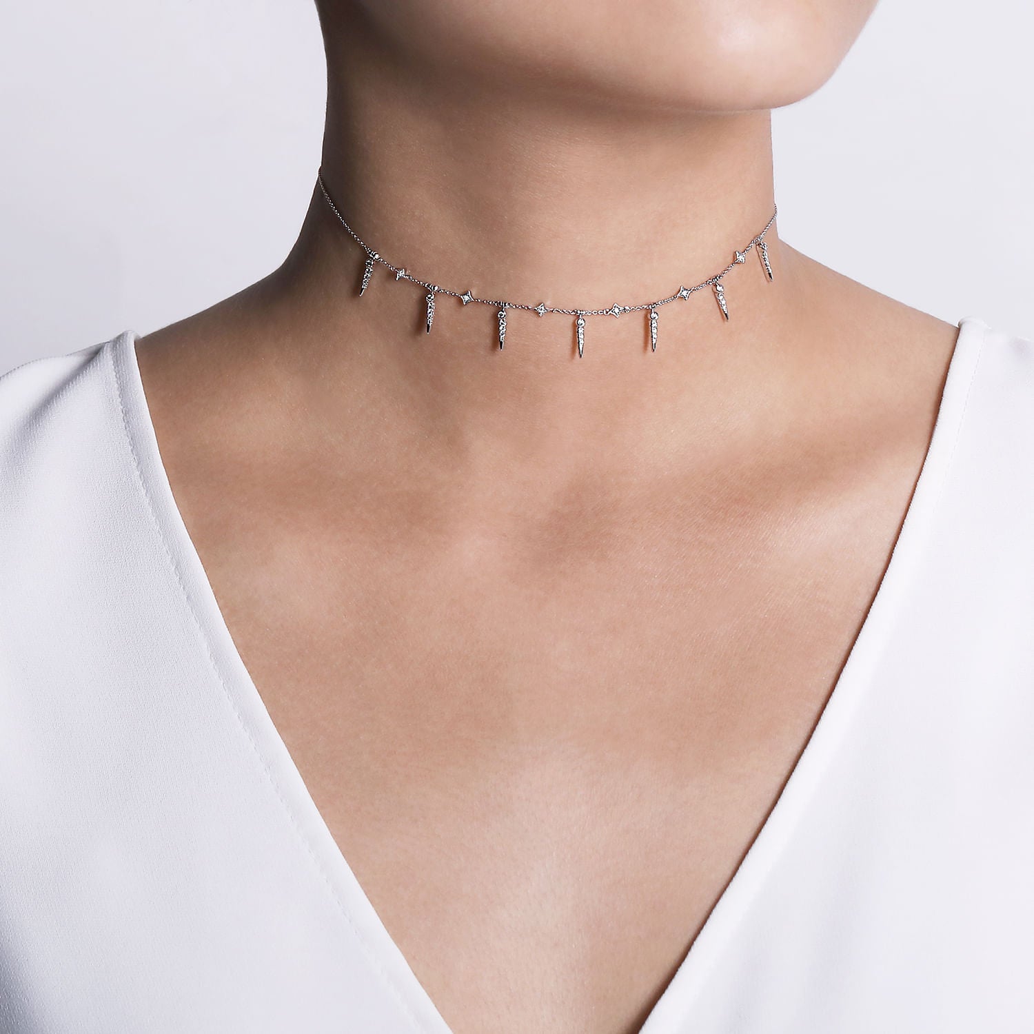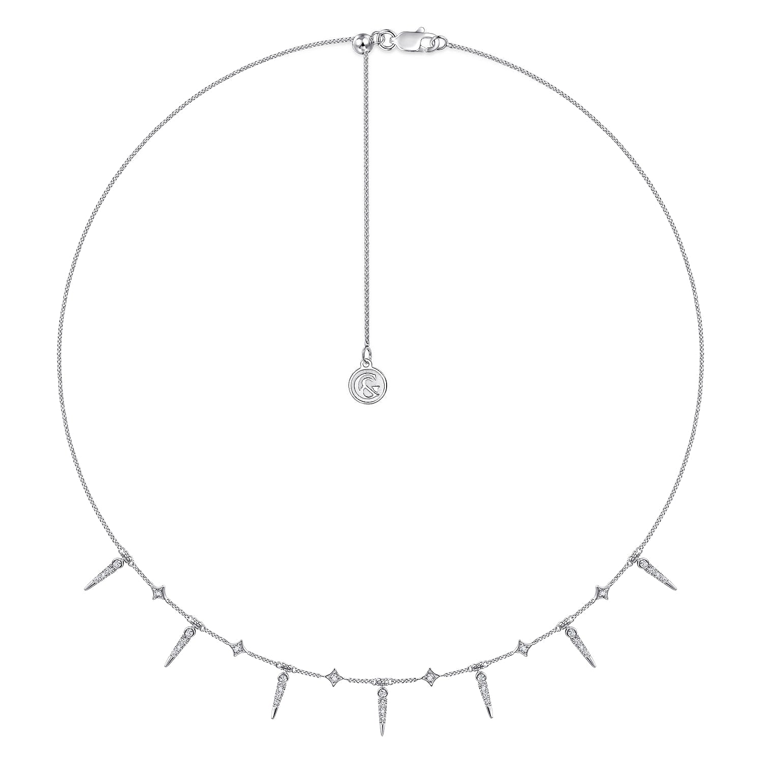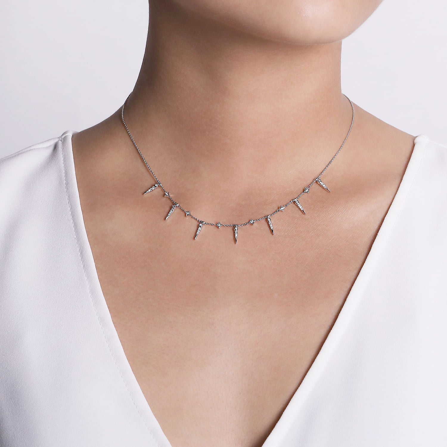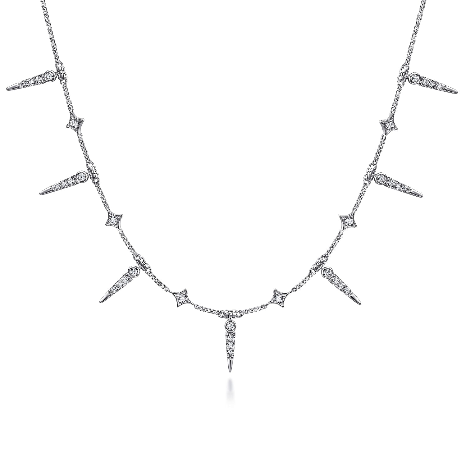 You're reviewing: 14K White Gold Alternating Diamond Spike Necklace