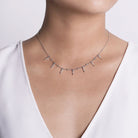 14K White Gold Alternating Diamond Spike Necklace